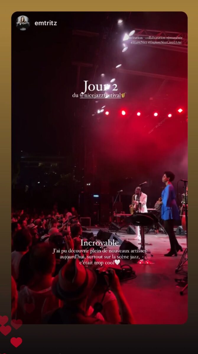 Totalisant plus de 550 000 followers, les influenceurs accueillis ont pu, à leur tour, faire découvrir les richesses de Nice Côte d’Azur et l’effervescence des soirées du Nice Jazz Fest à leurs communautés respectives, notamment sur Instagram. De nombreux contenus ont, en effet, été largement diffusés sur leurs réseaux sociaux durant leur séjour (posts, reels et stories). Quelques exemples ci-dessous :