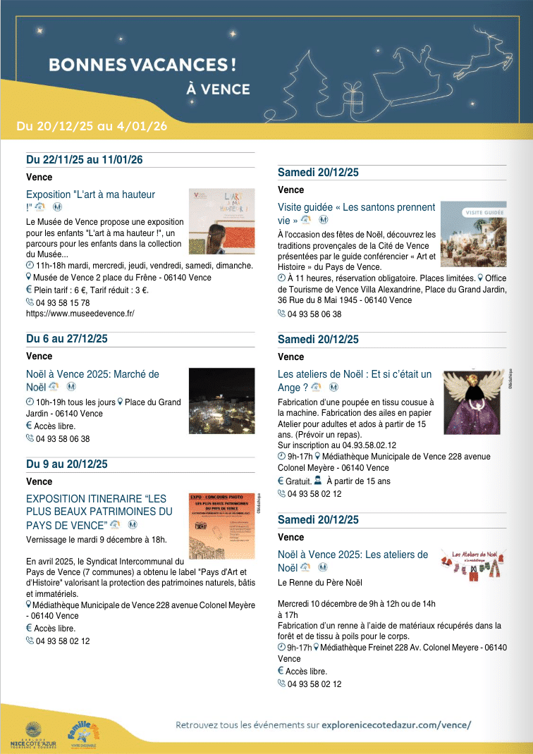 Comme à chaque période de vacances scolaires et fidèle à ses engagements de destination FAMILLE PLUS, l’Office de Tourisme Nice Côte d’Azur a mis en ligne un agenda destiné aux familles qui sont à Nice Côte d’Azur à l’occasion des vacances de Noël.