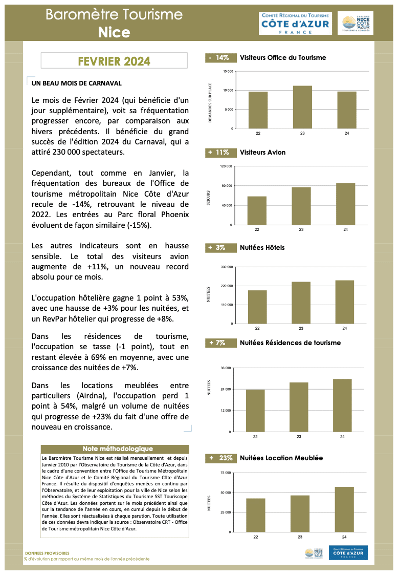 Baromètre touristique Nice du mois de février 2024