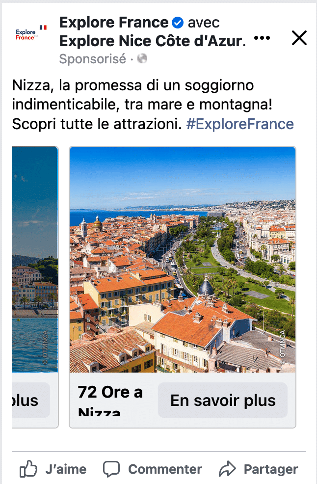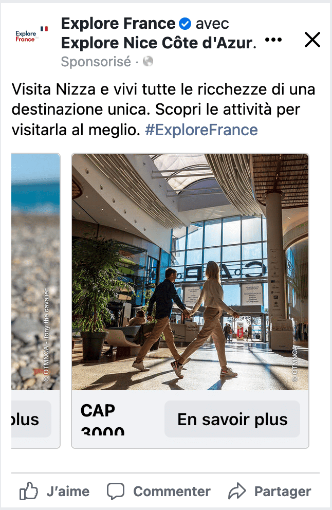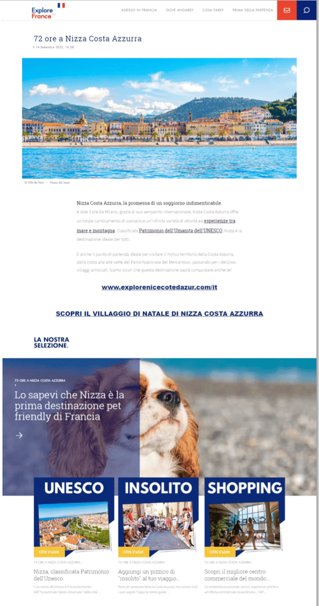 (présence toujours effective: https://it.france.fr/it/campagna/72-ore-a-nizza-costa-azzurra) - Une présence dans la newsletter grand public d’Atout France Italie – visuel ci-dessous