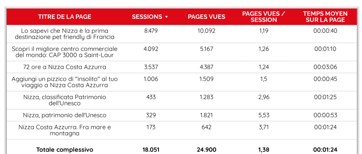 La thématique « Découvrir Nice pendant les fêtes de fin d’année » a très bien marché, avec près de la moitié des impressions et 3/4 des clics.