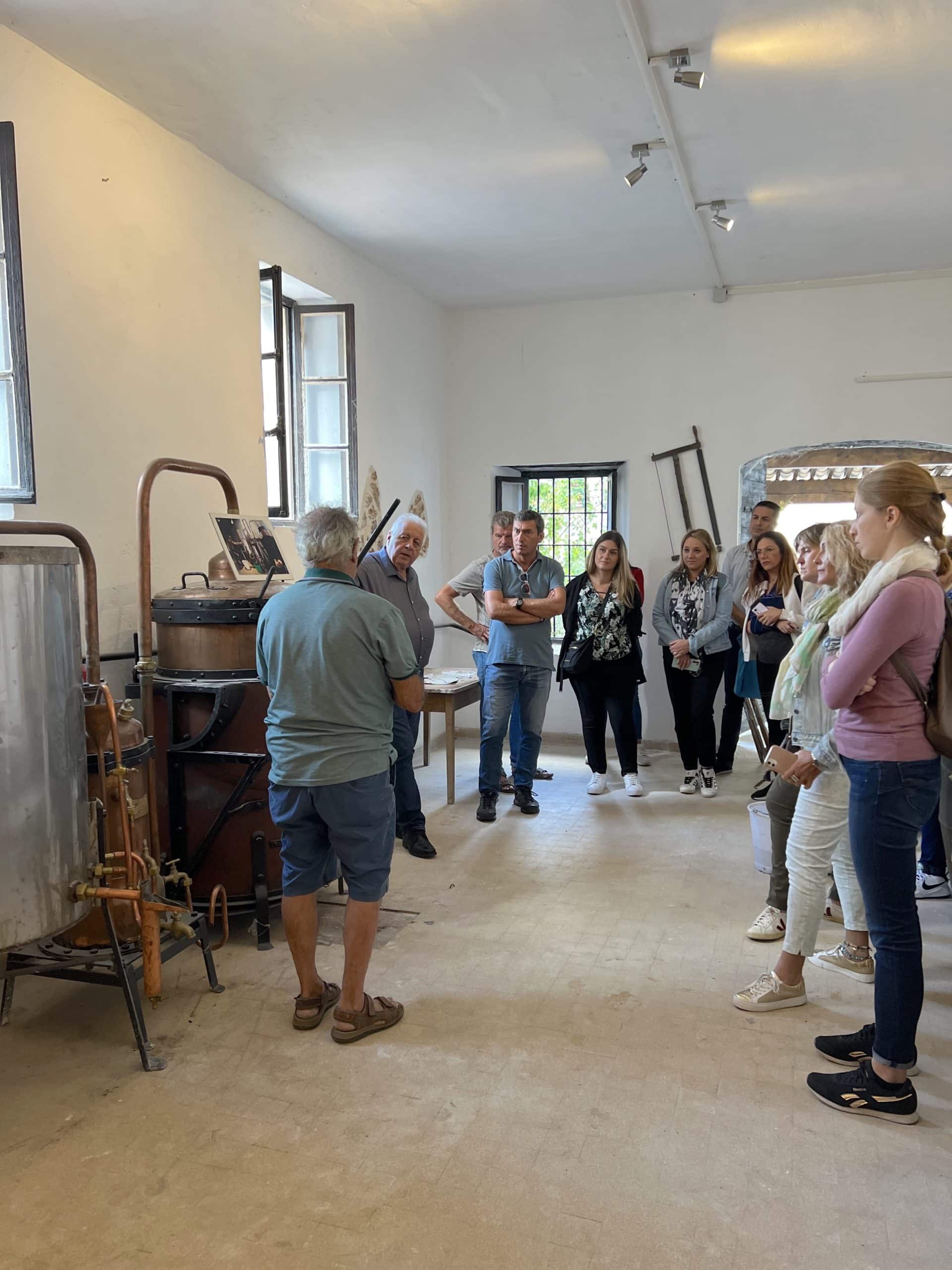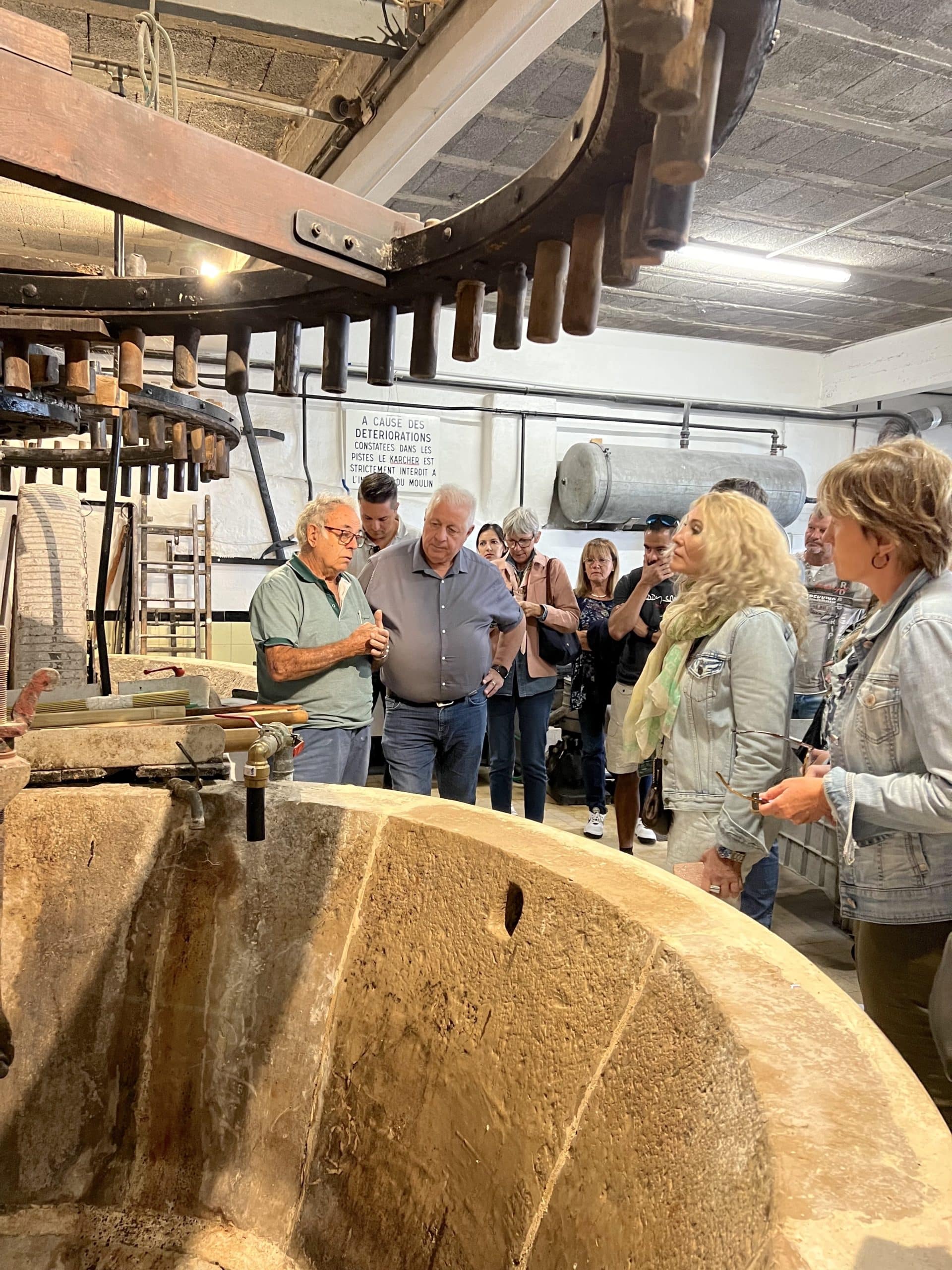 Accueilli par Robert NARDELLI, Maire de Drap et une partie des élus de la commune, le petit groupe a entamé cette journée d’éductour par la visite du village et de ses atouts patrimoniaux et architecturaux. En premier lieu, le moulin à huile qui, depuis le XVIIe siècle, broie les olives du territoire grâce à ses deux meules en granit ainsi que l’alambic très bien restauré. La découverte s’est ensuite poursuivie par la visite de l’église Saint-Jean-Baptiste (église du 18ème siècle).