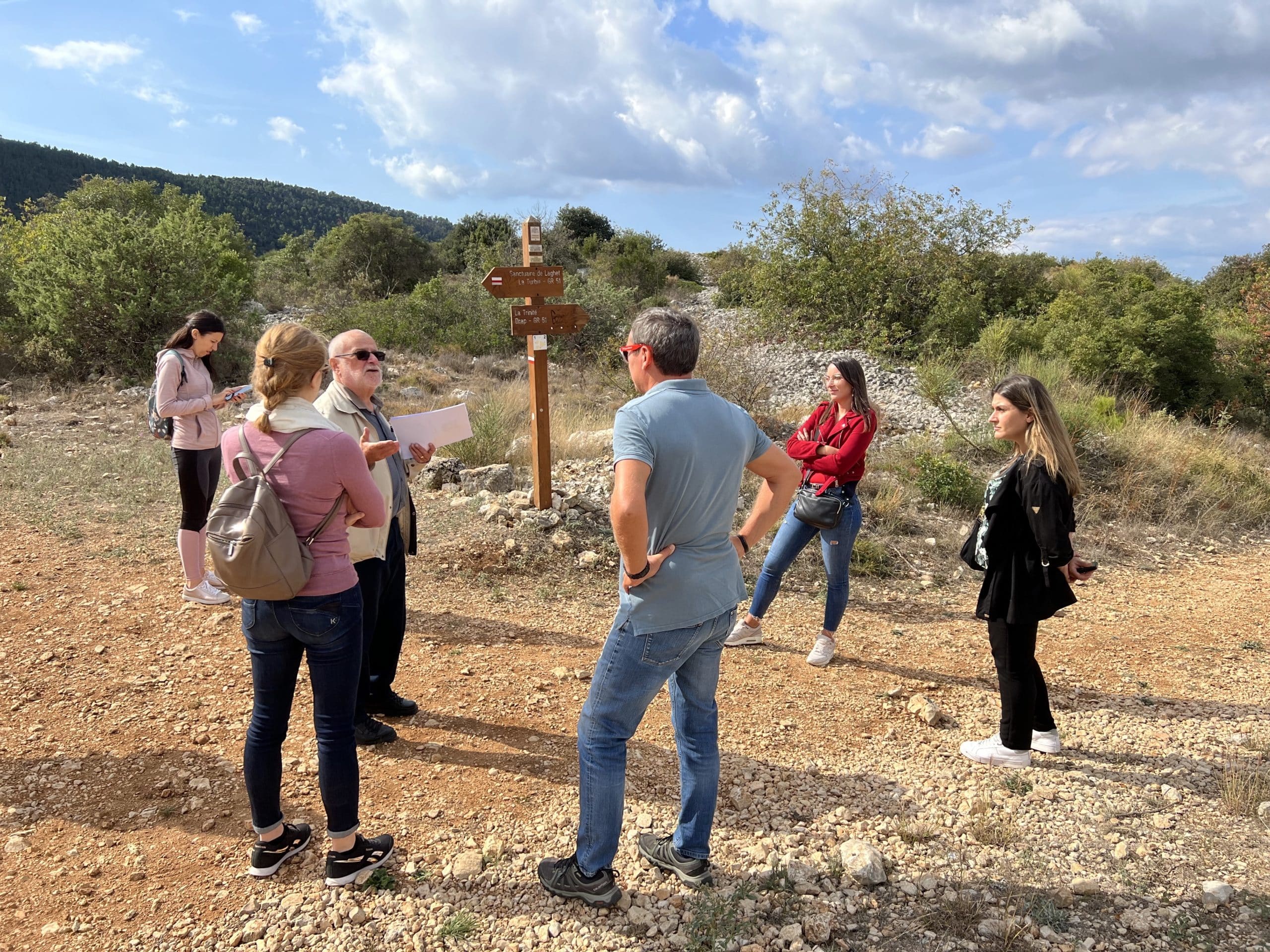 Toujours accompagné par Monsieur le Maire, les participants ont ensuite pu rejoindre les ruines médiévales du Castel Nuovo (haut lieu historique) pour une visite circonstanciée du travail de préservation effectuée par les bénévoles du village. Le site du Mont-Macaron fut aussi au programme de cette riche et passionnante journée (ses sentiers de randonnées et de VTT, son patrimoine, sa faune, sa flore et sa géologie – À noter que la totalité du Mont Macaron est classé en Zone Naturelle d’intérêt Écologique Faunistique et Floristique).