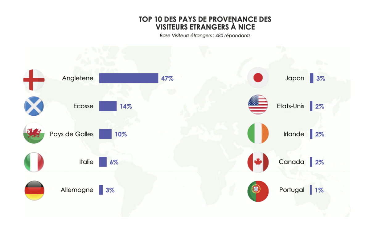 - 63% des visiteurs visitaient Nice pour la première fois. Auprès des étrangers, ce score atteint 73%.
