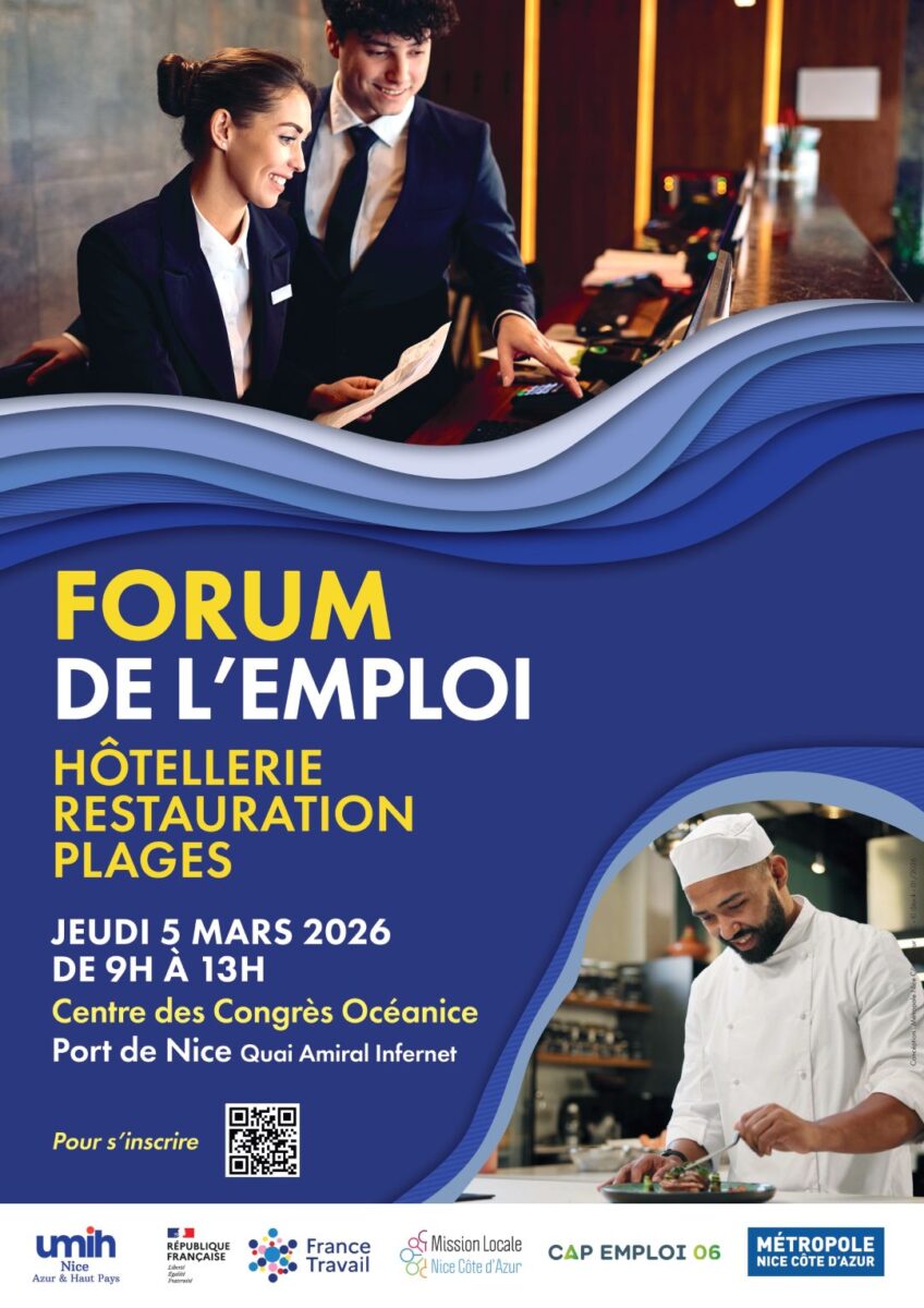 Ce jeudi 5 mars 2026, le Centre des Congrès OcéaNice accueillera la 5ᵉ édition du Forum de l’Emploi Hôtellerie-Restauration-Tourisme-Plages, un rendez-vous incontournable pour les professionnels et candidats du secteur. Organisé par la Métropole Nice Côte d’Azur, France Travail et la Fédération des métiers de l’hôtellerie/restauration (UMIH), ce « job dating » promet des opportunités d’embauche immédiates et des rencontres directes avec les employeurs locaux. L’Office de Tourisme Nice Côte d’Azur sera physiquement présent pour recruter ses futurs saisonniers.