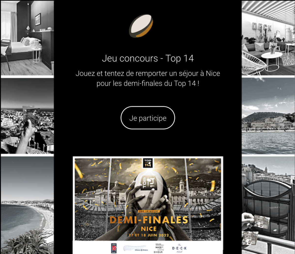 À l’occasion du compte à rebours J-100, l’Office de Tourisme Métropolitain Nice Côte d’Azur et ses partenaires organisent, du 10 au 20 mars 2022, un jeu concours sous forme de quiz pour faire gagner un séjour à Nice placé sous le signe du rugby !