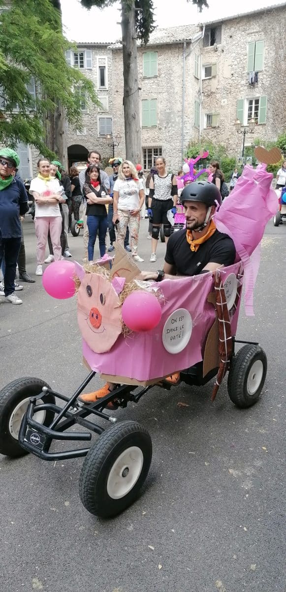 Répartis en équipes, les collaborateurs de l’OTM NCA se sont pris au jeu et au défi de construire des « caisses à savon« , à partir d’une structure métallique à pédales, de bouts de carton, de papier crépon et de ballons, avant de s’engager, avec un très grand enthousiasme, dans une couse effrénée hilarante.