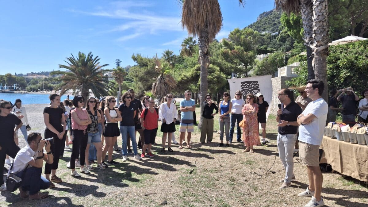 Après un déjeuner convivial sur le rooftop d’OcéaNice, les équipes ont été accueillies par Roger ROUX, Maire de Beaulieu-sur-Mer, et son Adjointe Communication – Proximité – Tourisme, Françoise SANCHINI, sur la plage emblématique de La Petite Afrique.