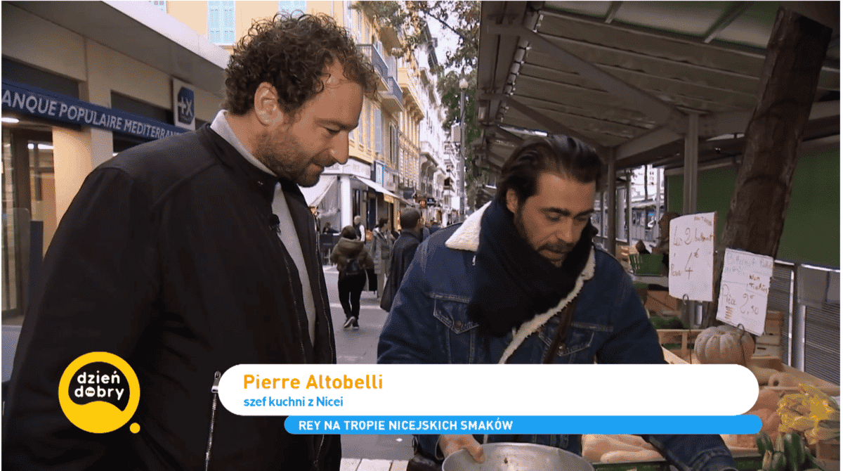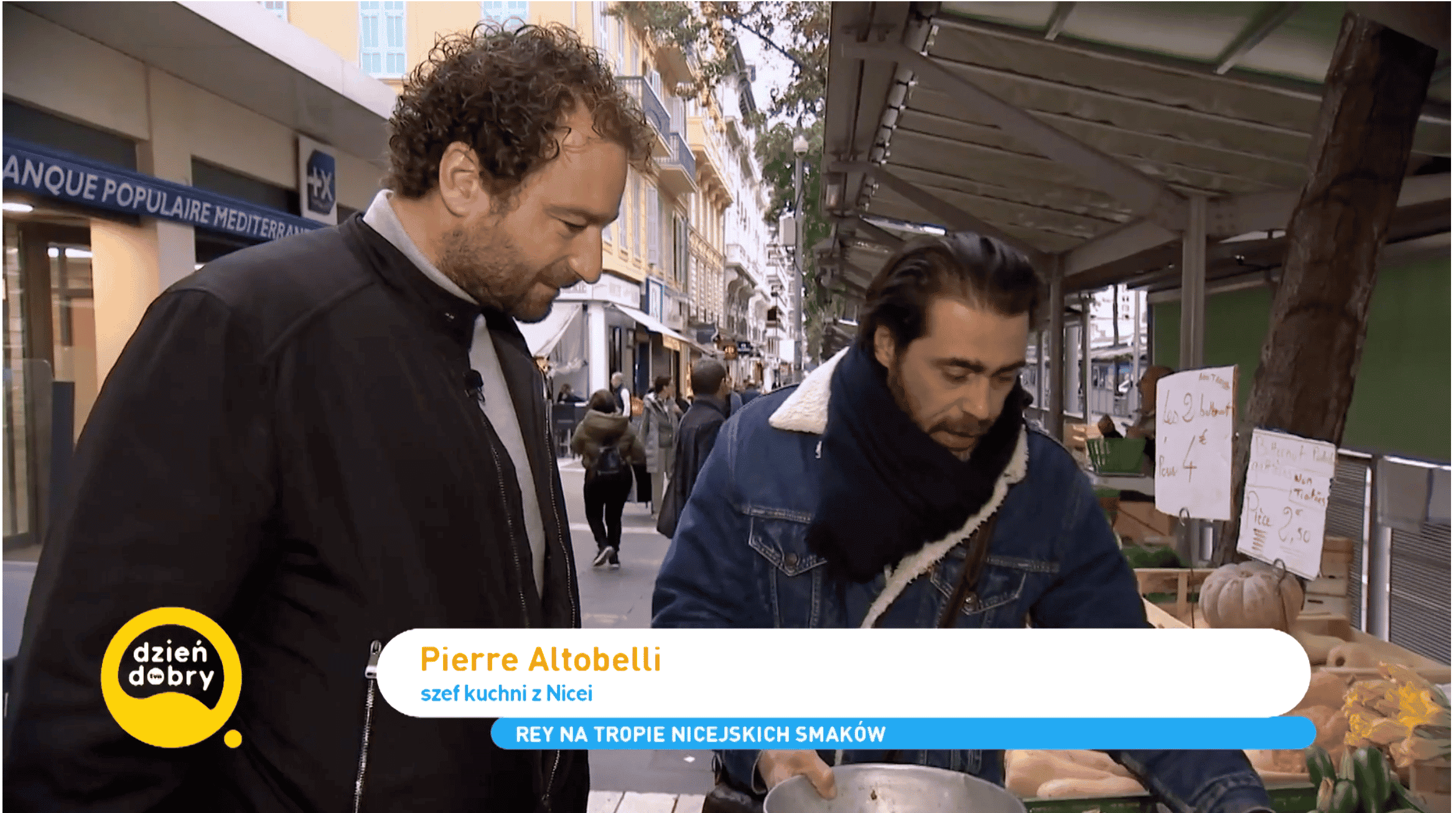 Deux chroniques gastronomiques consacrées à la découverte de la cuisine niçoise ont été diffusées à la télévision polonaise, l’une en février, l’autre en juin. Elles étaient animées par Nicolas Rey, un cuisinier français expatrié en Pologne, également animateur au sein de l’émission matinale « Dzień Dobry » (Good Morning TVN).