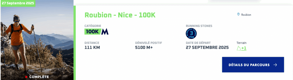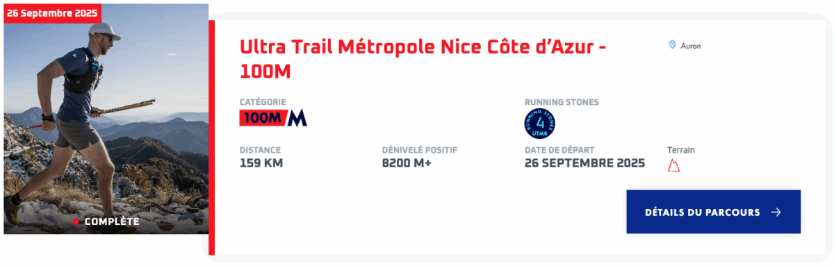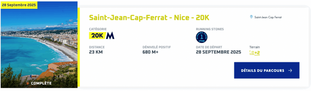 Nice Côte d’Azur by UTMB®, c’est quatre distances, de 20 km à 100 miles (159 km), et autant de possibilités pour les 6 000 coureurs français et internationaux attendus de découvrir les paysages variés de la Métropole Nice Côte d’Azur, des plus hauts sommets du Mercantour aux vues panoramiques de Nice Côte d’Azur, avant d’arriver au cœur de la ville de Nice, sur la Promenade des Anglais ! Les départs se font d’Auron, de Roubion, d’Eze et de Saint-Jean-Cap-Ferrat en fonction de la distance choisie.