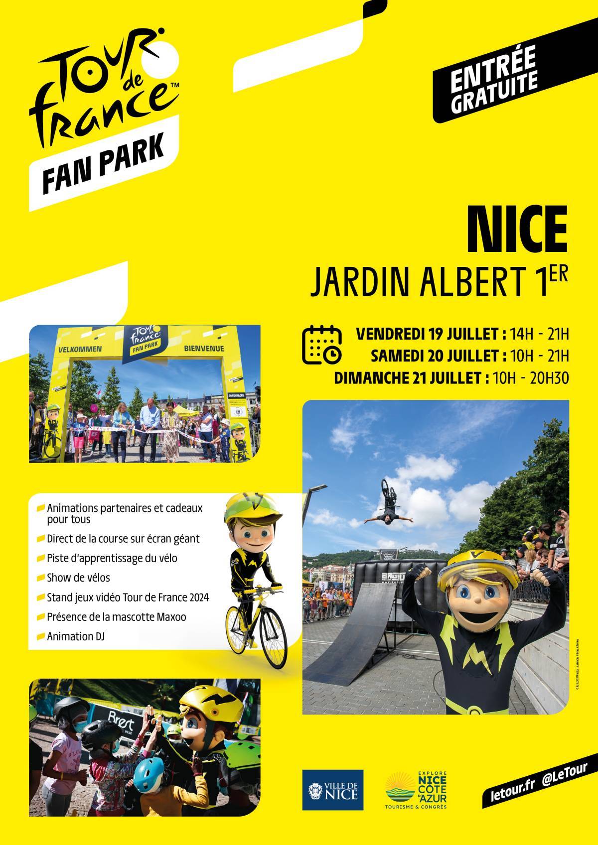 🚴♂️ Un Fan Park pour accueillir gratuitement les amoureux du plus grand événement cycliste au monde – Jardin Albert 1er. Au programme : retransmission des étapes sur un écran géant, la découverte de spécialités locales, des pistes d’apprentissage du vélo pour enfants (Savoir Rouler à Vélo et pumptrack), des shows de BMX, des ateliers de sensibilisation à la sécurité routière, des initiations à la réparation, etc. Les fans du Tour de France pourront également affiner leurs connaissances du Tour avec des quiz dédiés. Et chacun pourra repartir avec des cadeaux autour de la Grande Boucle.