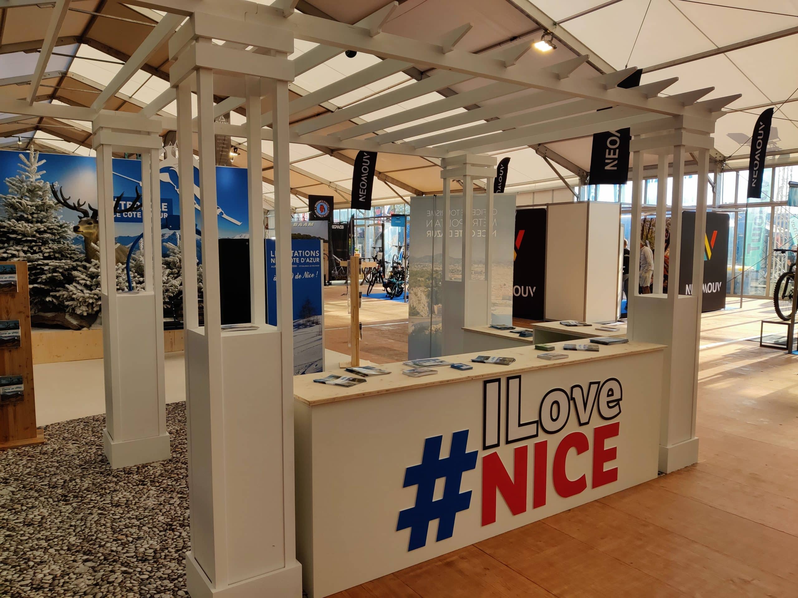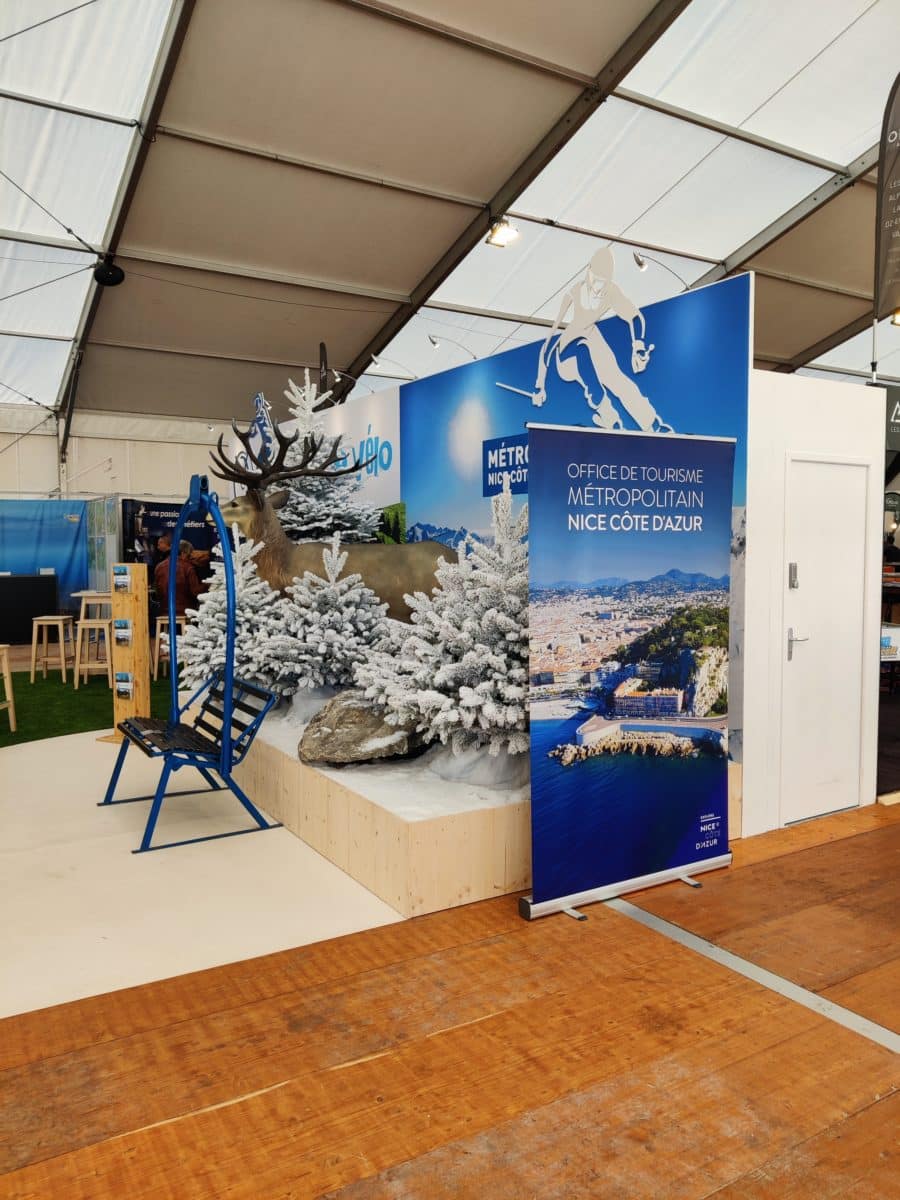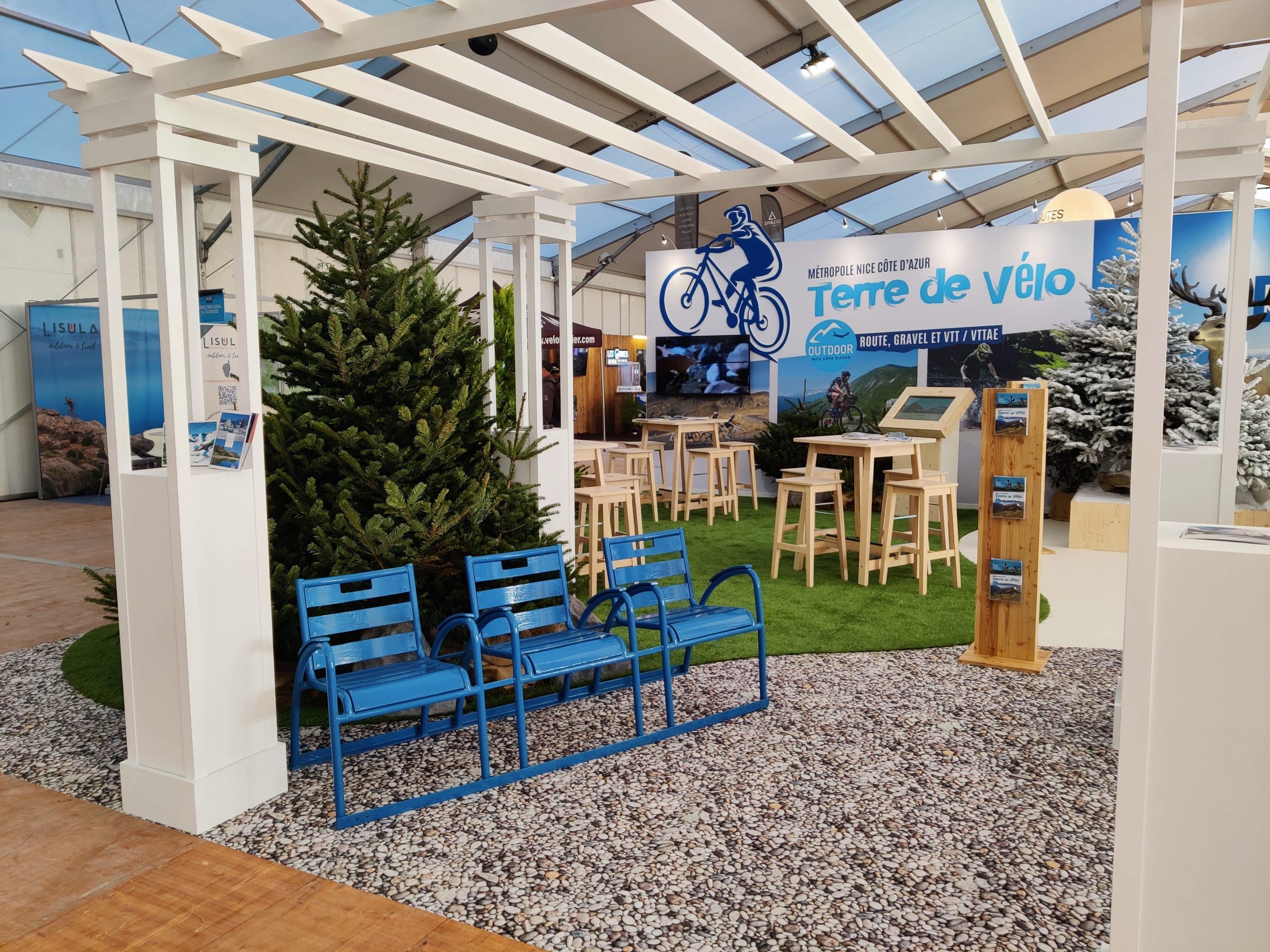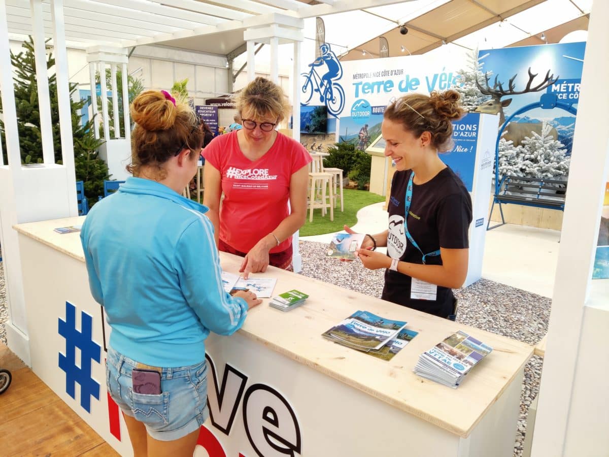 L’OTM était présent sur le stand de la Métropole Nice Côte d’Azur qui, outre de la documentation, mettait à la disposition du public deux écrans tactiles permettant de visualiser sur le site spécifique de la Métropole Outdoor Nice Côte d’Azur, les circuits route, VTT et Gravel du territoire métropolitain. Sur un écran TV, un film promotionnel de l’OTM ainsi que deux autres films de la Métropole ont été diffusés en boucle pour plonger le public en immersion. Un décor « photo booth » proposait au public de se faire prendre en photo dans une ambiance de montagne Nice Côte d’Azur.