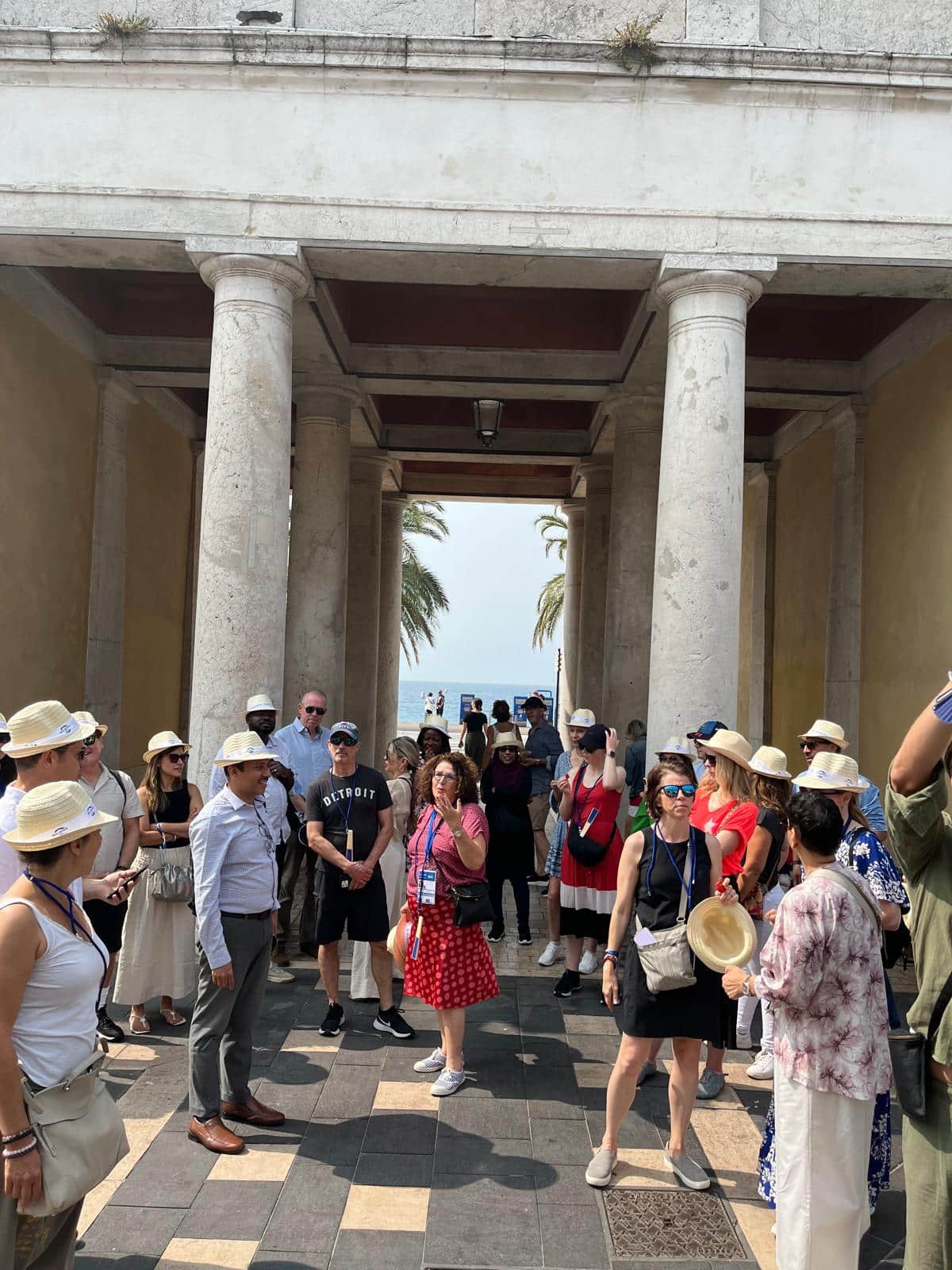 La matinée a débuté par une visite guidée thématique assurée par le Centre du Patrimoine, mettant en lumière l’inscription de Nice au patrimoine mondial de l’UNESCO en tant que « ville de villégiature d’hiver de Riviera ». Répartis en groupes francophone et anglophone, les participants se sont montrés particulièrement curieux et enthousiastes, échangeant activement avec les guides sur l’histoire urbaine et architecturale de la ville.