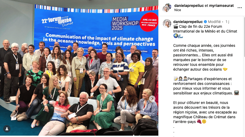 Pendant trois jours, l’atelier Media Workshop a réuni à Nice un panel international de présentateurs météo et de scientifiques issus de grandes institutions spécialisées en météorologie, climatologie et observation de la Terre. Les échanges ont porté sur les stratégies de communication climatique, les impacts du changement global et les enjeux liés à la préservation des océans.