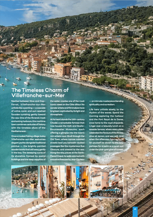 À travers des textes documentés et des photographies immersives, le magazine révèle Nice Côte d’Azur comme une destination culturelle, gourmande, durable et ouverte sur le monde. Les images illustrent les marchés, les panoramas, la vie locale et des expériences authentiques. Outre le portrait inspirant de Nice, l’article valorise aussi les communes de Villefranche-sur-Mer, Saint-Jean-Cap-Ferrat et d’Èze Village.
