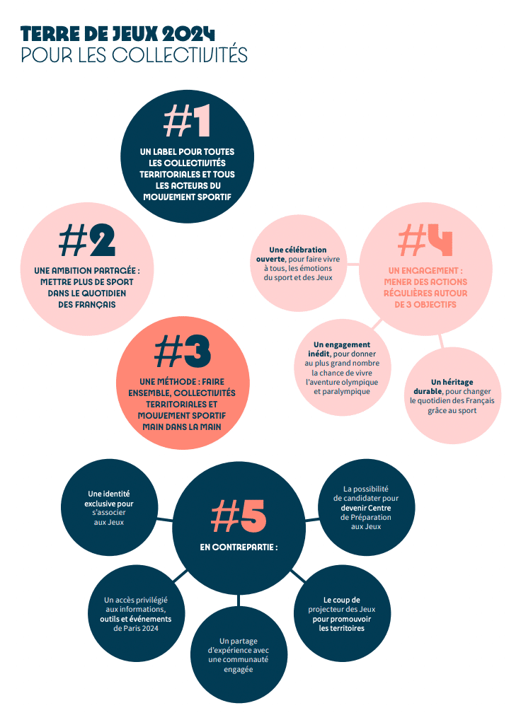 Terre de Jeux 2024 est un label destiné à l’ensemble des collectivités territoriales (communes, intercommunalités, départements, régions et collectivités d’Outre-mer), aux acteurs du mouvement sportif et aux ambassades qui souhaitent s’engager dans l’aventure des Jeux Olympiques 2024, quels que soient leur taille et leurs moyens,
