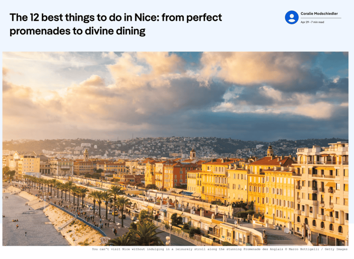 La destination Nice Côte d’Azur bénéficie d’une belle visibilité sur le site de voyage « Lonely Planet » au sein de sa rubrique « Travel Stories »