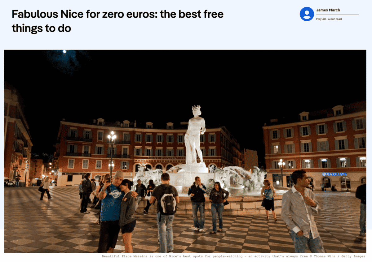 Les retombées presse de l’accueil « Lonely Planet » réalisé du 11 au 14 avril 2022, en collaboration avec Atout France sont désormais connues. Cet accueil faisait suite au workshop presse IMM d’Atout France à Londres en mars 2022 (voir notre article blog du 5 avril 2022). L’Office avait offert une nuit d’hôtel et des cartes French Riviera Pass.