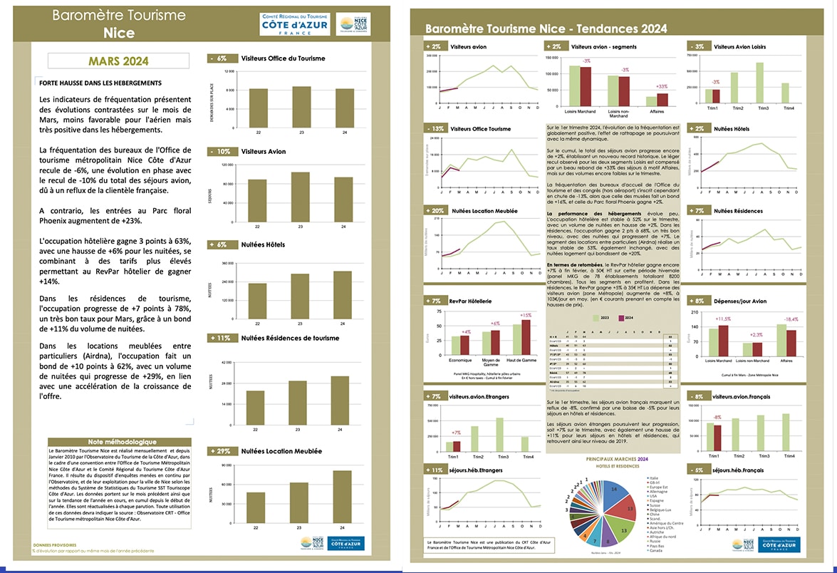 Fréquentation touristique en demi-teinte à Nice en ce mois de mars 2024. Certains secteurs d’activité ont connu de belle progression, tandis que d’autres subissent un net recul. En ce mois de mars...