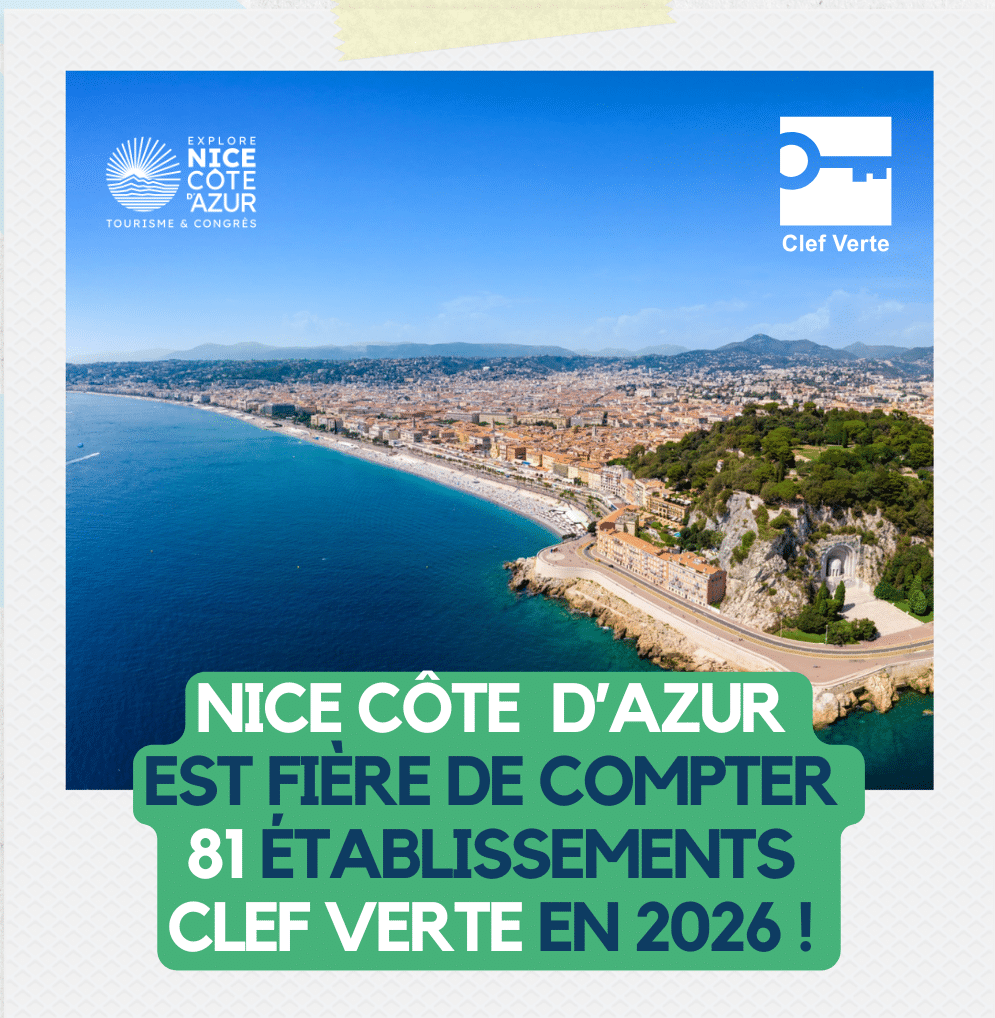 Fort de la réussite de son programme OBJECTIF CLEF VERTE depuis 2023, l’Office de Tourisme Nice Côte d’Azur réitère son accompagnement pour 2026, en collaboration avec l’association TERAGIR (porteur du label Clef Verte), l’UMIH Nice Azur & Haut Pays et la Chambre de Commerce et d’Industrie Nice Côte d’Azur. La liste des nouveaux lauréats « Clef Verte » 2026 vient, en outre, d’être révélée. « Clef Verte » est le premier label de tourisme durable pour les hébergements touristiques et les restaurants en France.