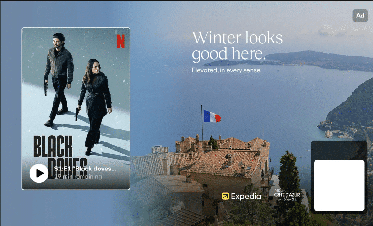 - un dispositif renforcé sur les États-Unis avec un pack “Expedia Brand” (e-magazine, Netflix Pause Ads, et affichage à l’aéroport JFK à New York).