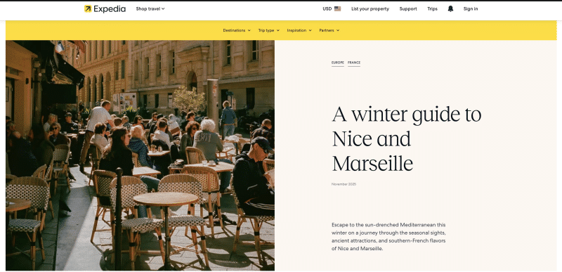 - des landing pages dédiées sur le site d’Expedia