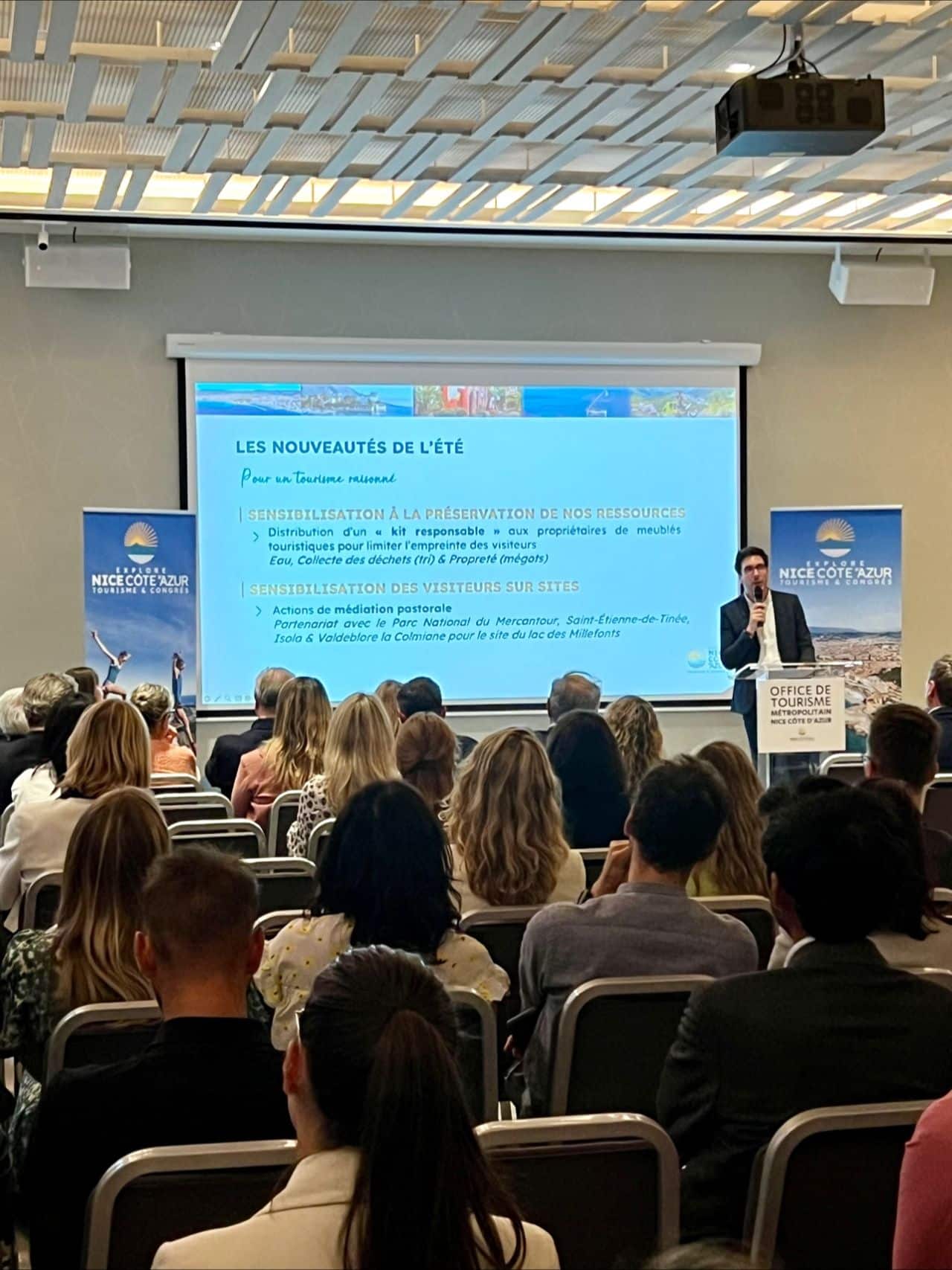 Jean-Sébastien MARTINEZ, Directeur de l’Office de Tourisme Métropolitain Nice Côte d’Azur et ses équipes, ont convié les professionnels du tourisme à assister à la présentation de la saison estivale 2024 à l’Hôtel Sheraton Nice Airport, ce mardi 21 mai 2024.