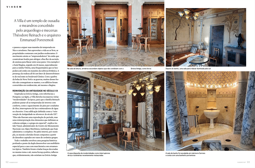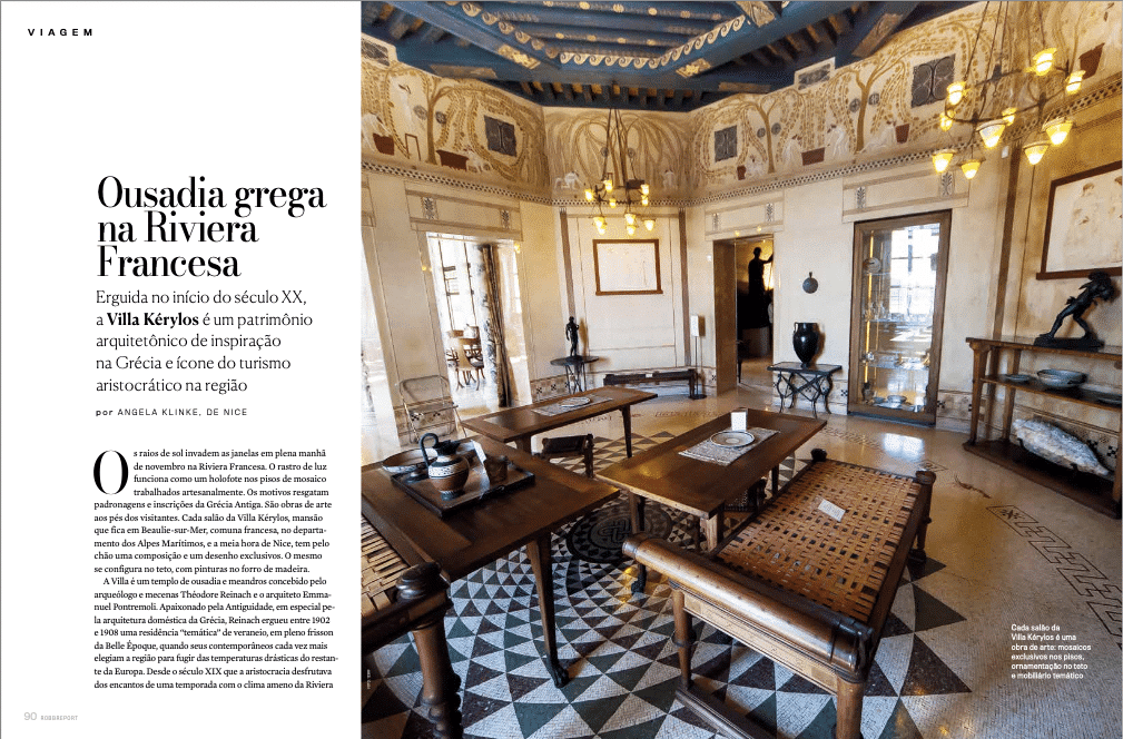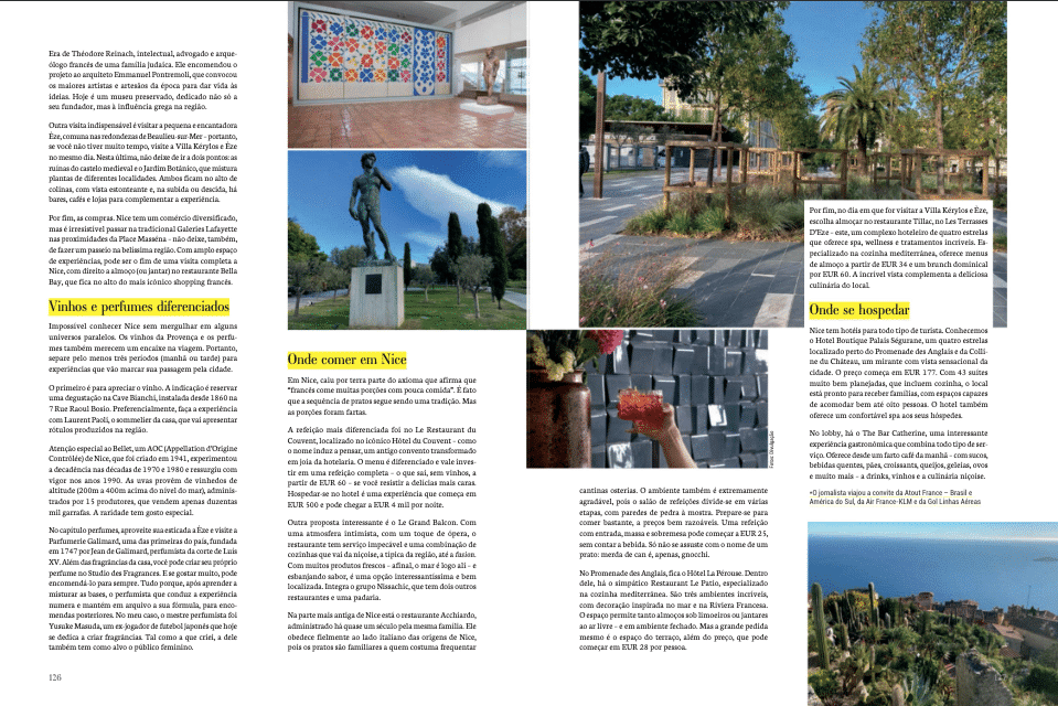 Sur 6 pages, l’article print a principalement mis en avant l’histoire et le charme de la Villa Kérylos, joyau de la Belle Époque, et évoqué l’accessibilité de Nice depuis Paris, son patrimoine culturel et touristique, récompensé par une inscription au patrimoine mondial par l’Unesco.