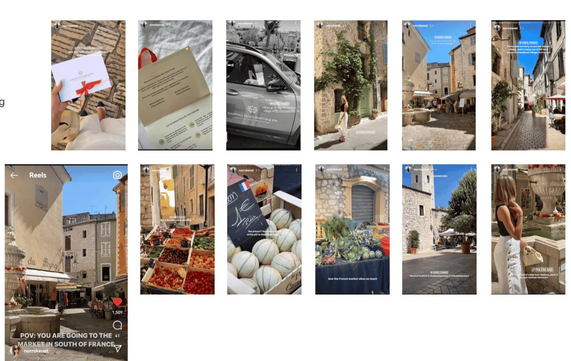 - 11 stories et un Reel (courte vidéo) sur Vence (1 510 Likes et 19 500 vues)