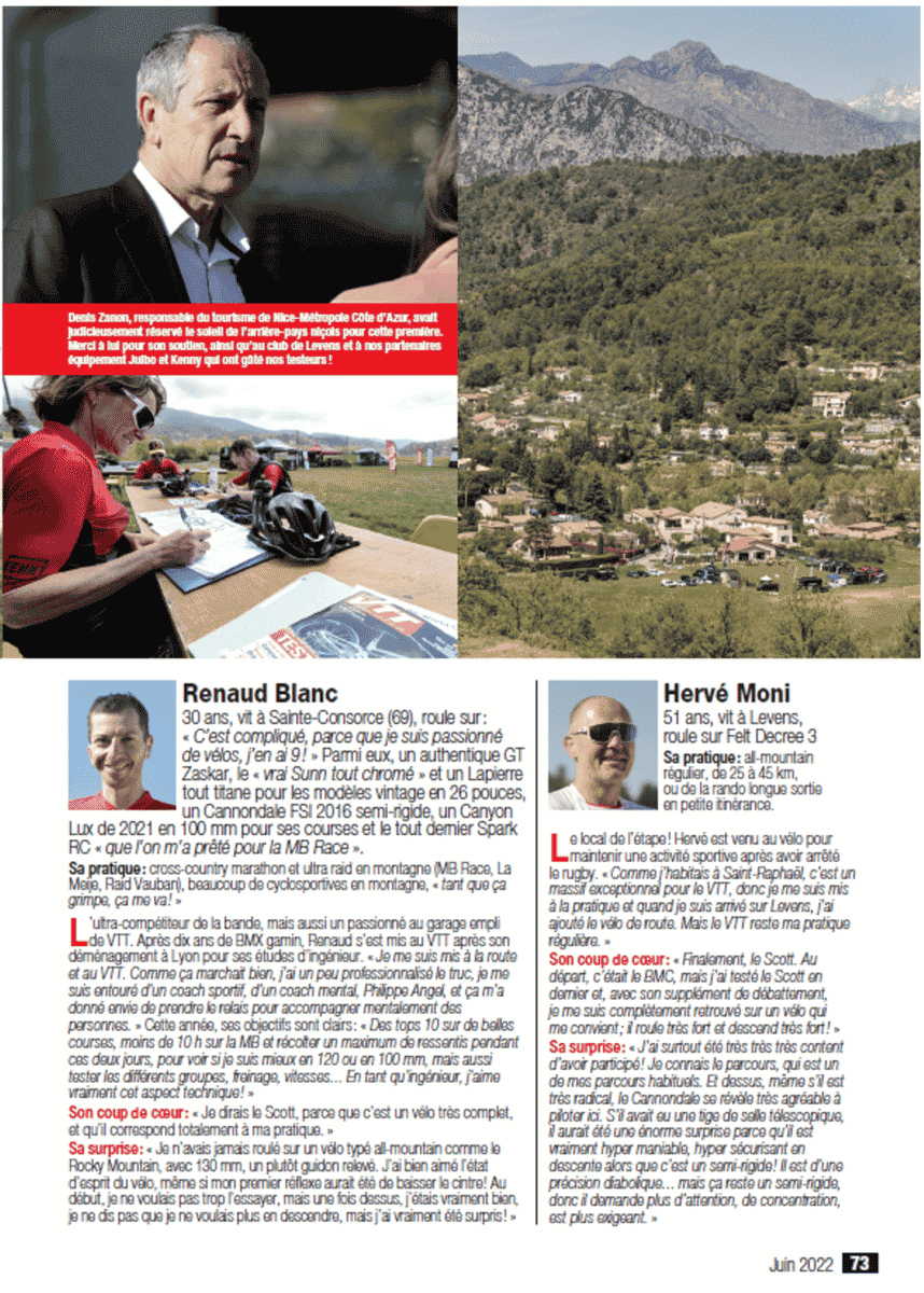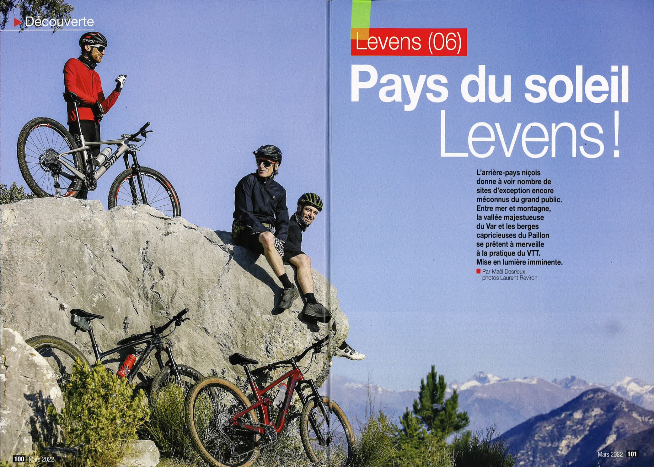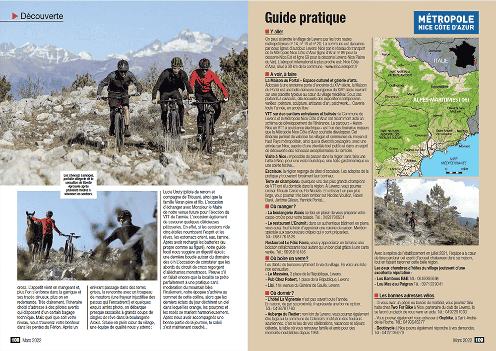 - 11 pages supplémentaires sur la destination Nice Côte d’Azur et présentant Levens comme un superbe spot pour la pratique du VTT (mars 2022). Cf notre article blog du 17 mars 2022.