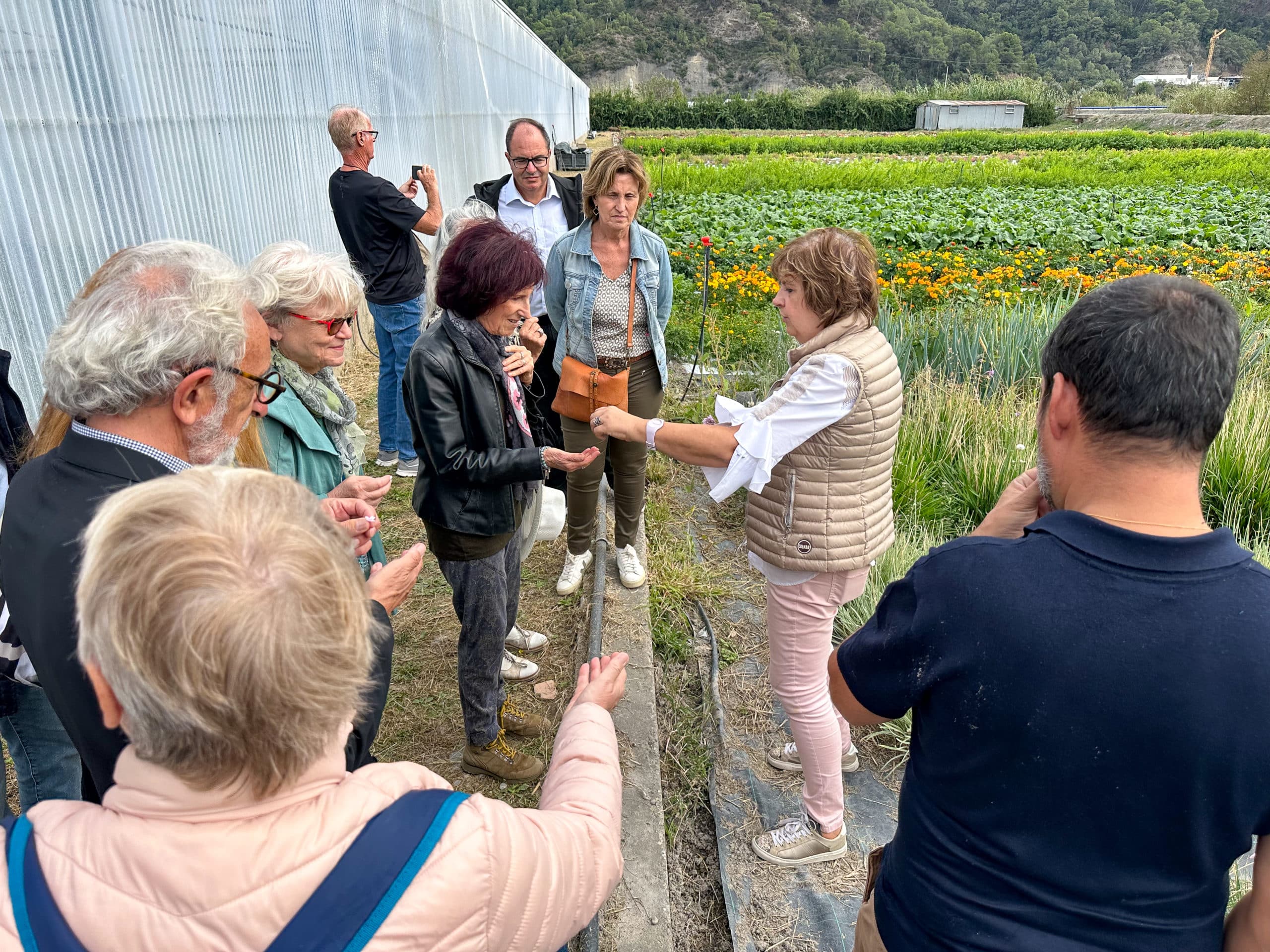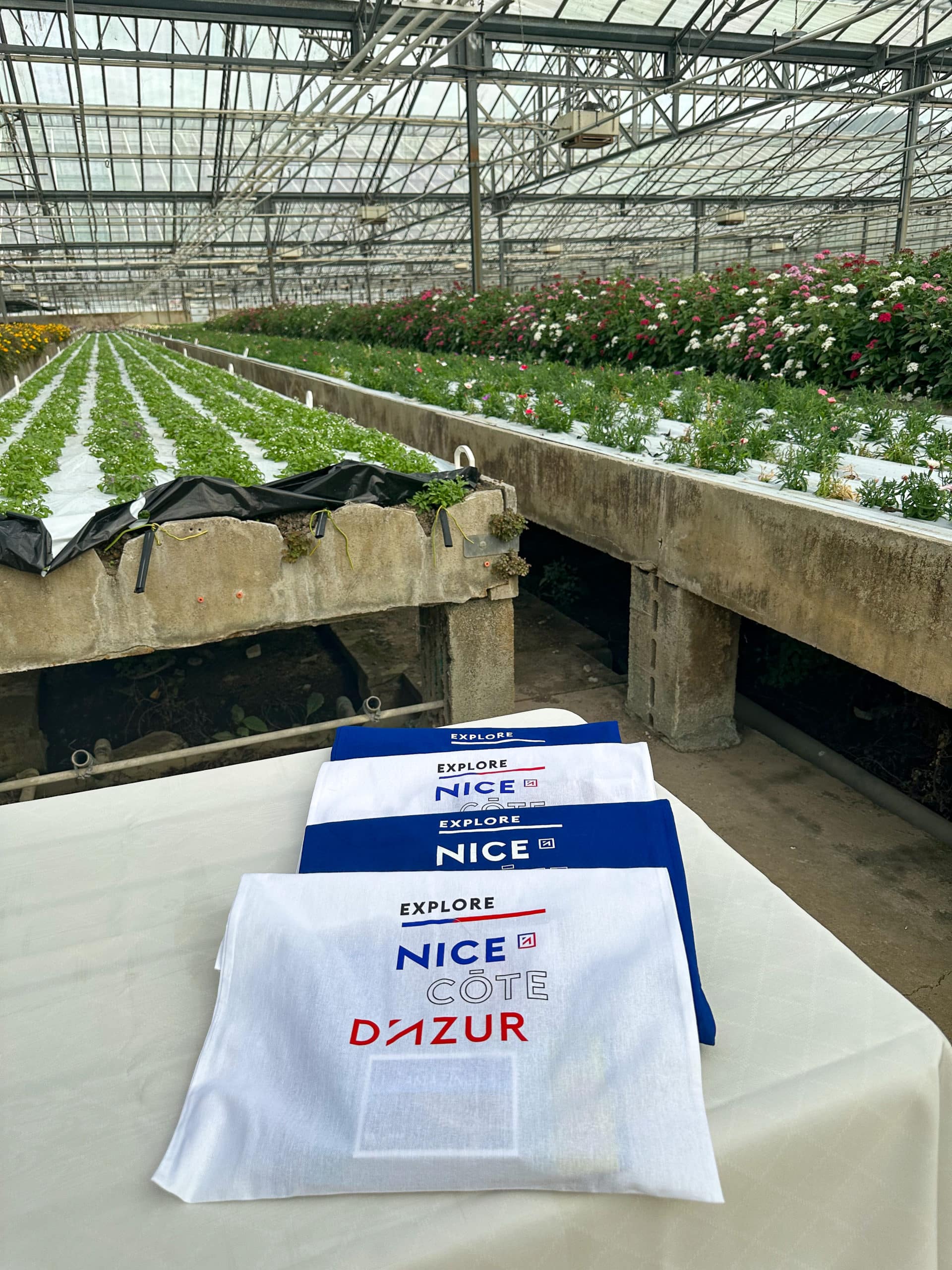 C’est sur l’exploitation Marius Auda, au 571 route de la Baronne à Gattières, (exploitation qui normalement n’est pas ouverte au public), que les participants ont été accueillis par Gilbert et Mireille AUDA, les exploitants du site, en présence de Lauriano AZINHEIRINHA, Directeur Général de l’OTM NCA et d’Isabelle DEFOLY, Directeur Relations Clientèles à l’OTM NCA. À noter que Mireille AUDA est également membre du comité technique de l’inscription de la Cuisine Niçoise au patrimoine culturel immatériel national.