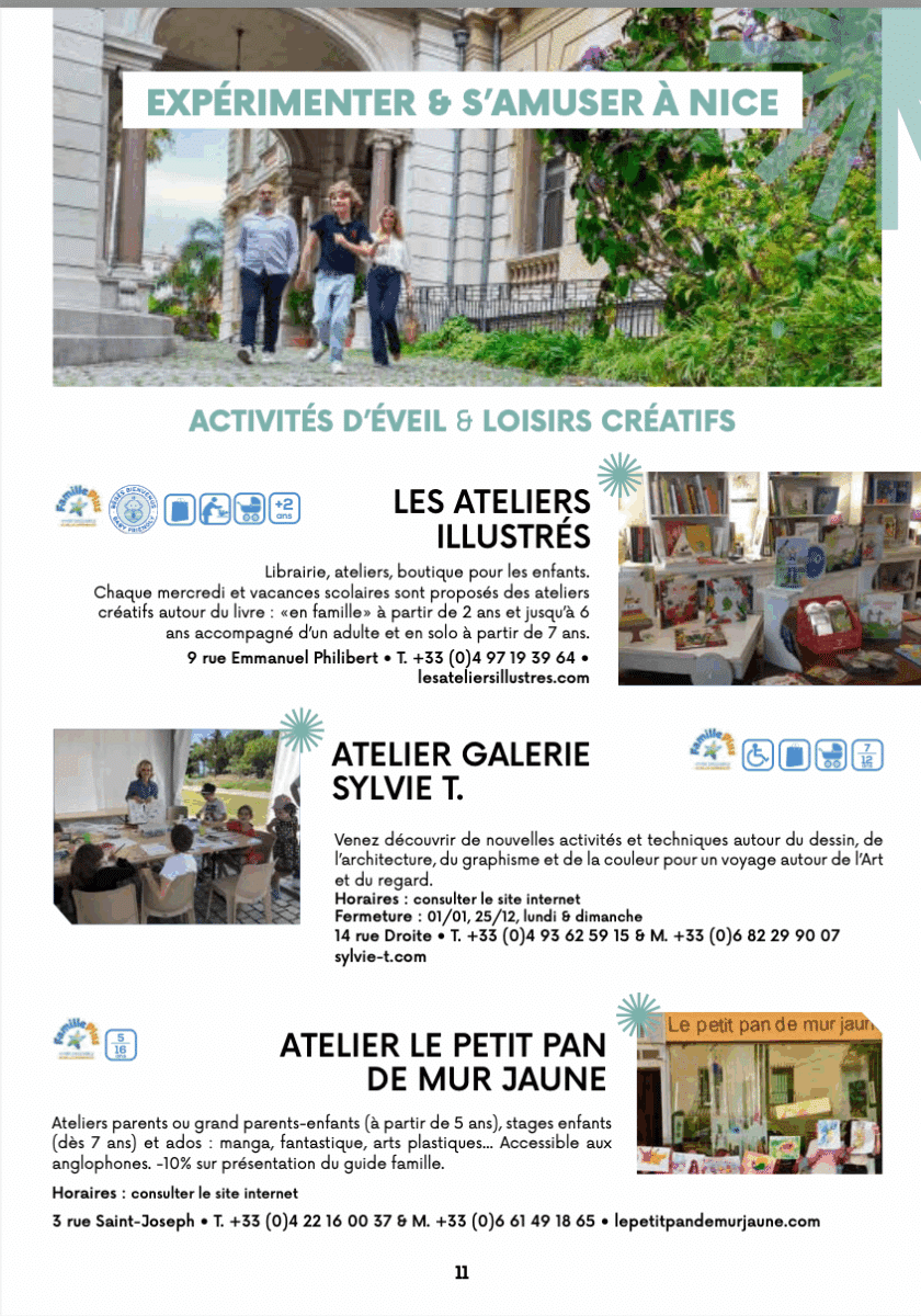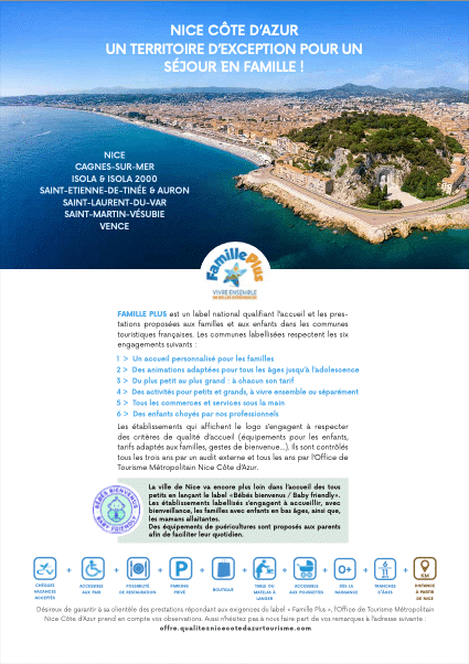 Le nouveau guide propose la liste complète des partenaires labellisés « Famille Plus » à Nice : hébergements, activités, restaurants… soit une centaine de prestataires engagés à offrir un accueil et des services adaptés aux familles avec enfants.