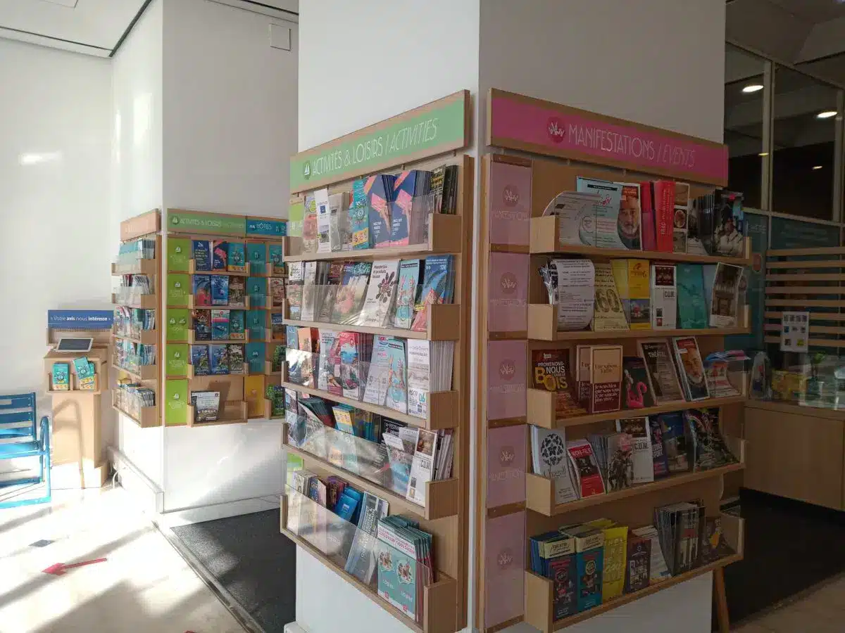 En accès libre pour les visiteurs, les présentoirs sont entretenus et réapprovisionnés tous les jours par les équipes de l’OTM NCA. Les dépliants et flyers sont ainsi accessibles et visibles en permanence par un très large public.