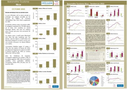 Baromètre touristique Nice du mois d’octobre 2022 et performance hôtelière (Enquête MKG)