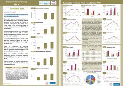 Baromètre touristique Nice du mois de novembre 2022 et performance hôtelière (Enquête MKG)