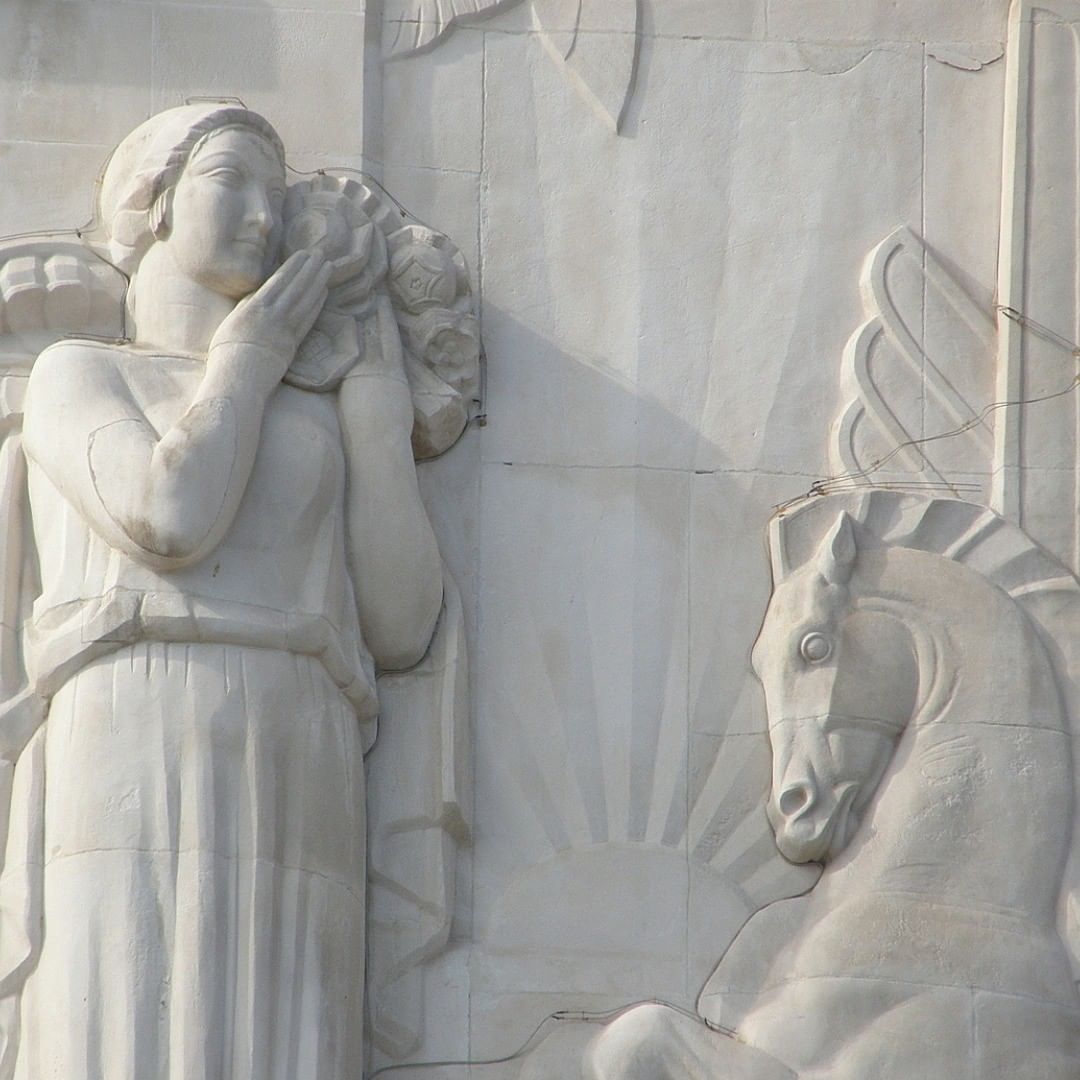 Mais revenons à cette audacieuse façade blanche rythmée par de grandes arcades. De part et d’autre de l’édifice, face à la mer et surplombant l’une des avenues les plus célèbres du monde, deux splendides frontons situés à belle hauteur, portent des bas-reliefs de déesses et de chevaux, constituant un élégant ensemble à la gloire de Poséidon.