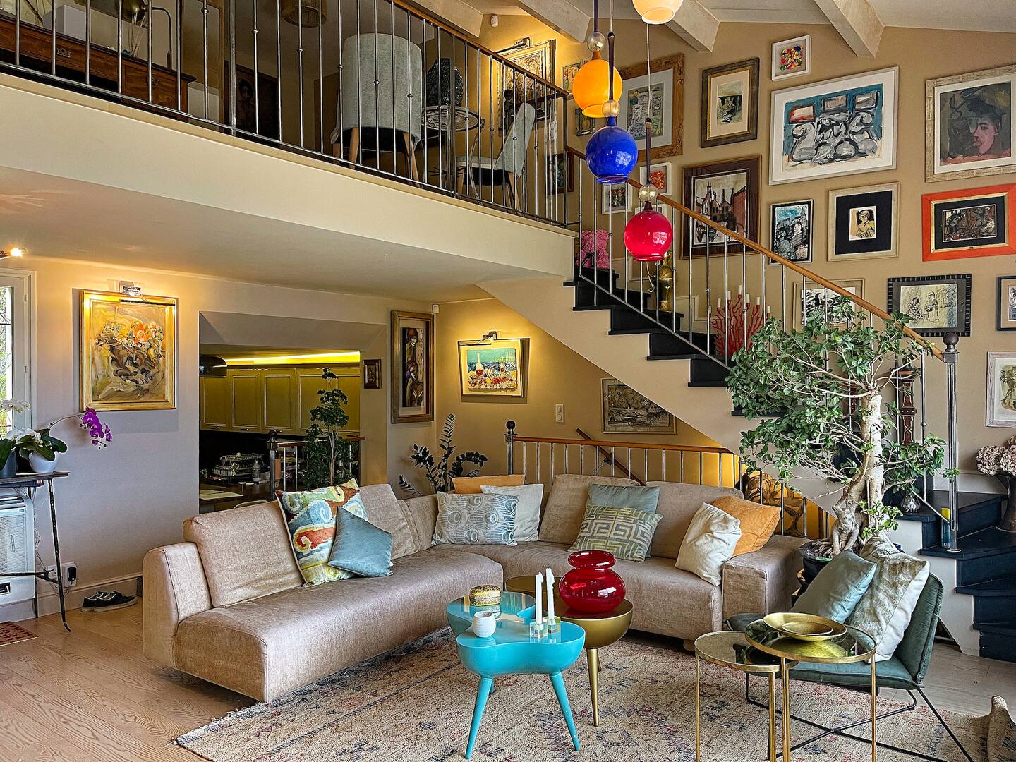 Plusieurs jardins et terrasses, d’exposition plein sud, sur 3 niveaux, composée d’un séjour / salle à manger, double hauteur au rez-de-chaussée avec une cuisine ouverte toute équipée et un toilette invités. Grande baie vitrée donnant sur la terrasse avec salon, table pour les repas et la vue panoramique mer, vieux Eze et viaduc en pierre de la moyenne corniche