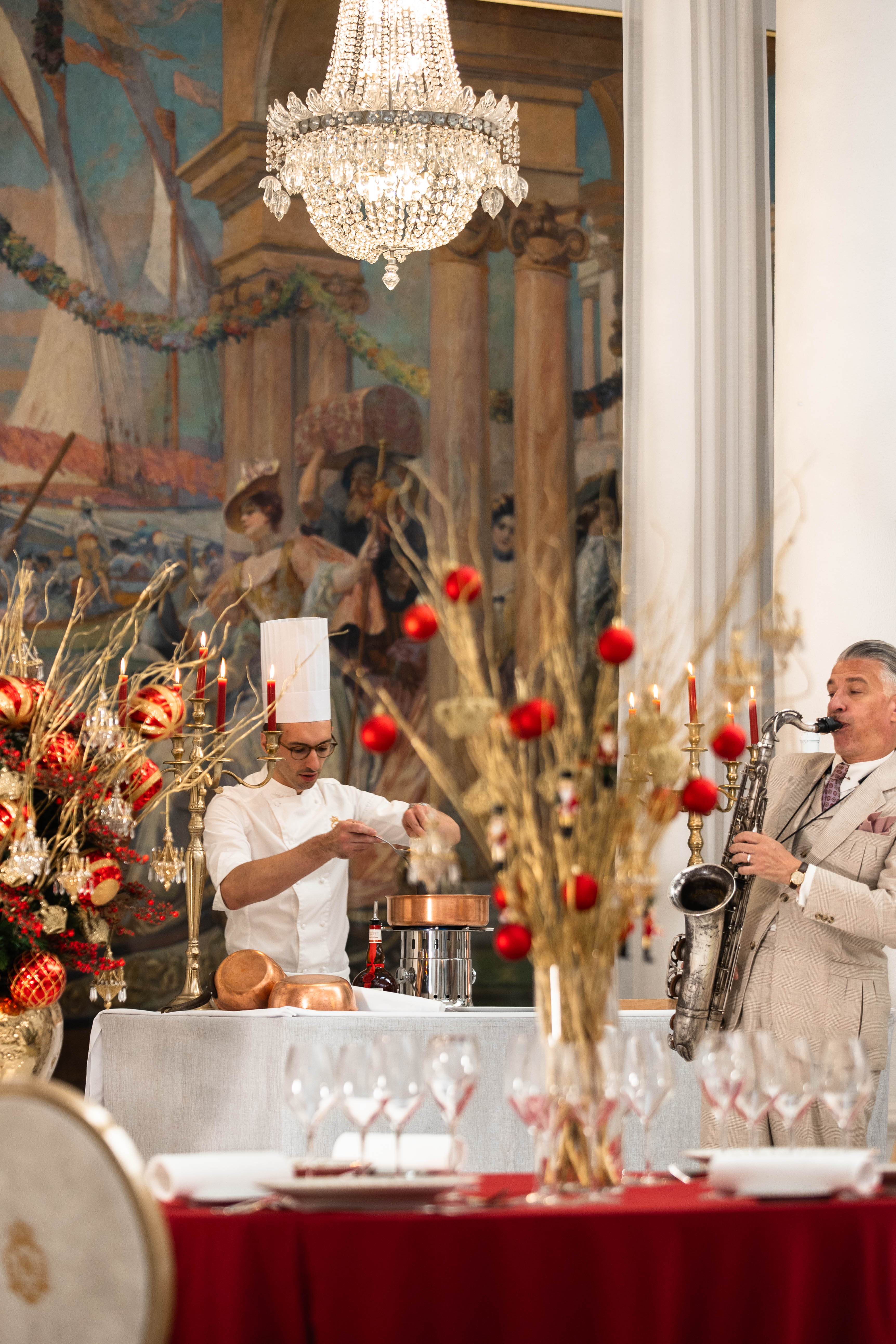 Families and friends gather for New Year's Brunch in the Salon Royal, serenaded by a musical quartet and featuring thoughtful touches for children. An exceptional buffet, featuring both sweet treats and savory creations, awaits in an atmosphere of celebration and refinement.