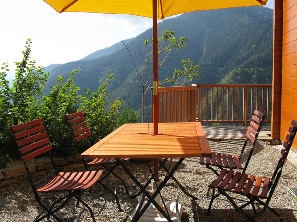 1 Bedroom with 1 double bed (90x190). 1 small bedroom with 2 single bunk beds (90x190). Shower room. Separate WC. The living rooms and bedrooms also open onto a terrace offering a view of the valley. Combined solar and wood heating. Charges included. Linens provided. Tourist tax extra. Car park. Storage room (ski and equipment). Hiking equipment loan/dem. Baby equipment provided on request (bed, high chair, bath, playpen, hiking backpack).