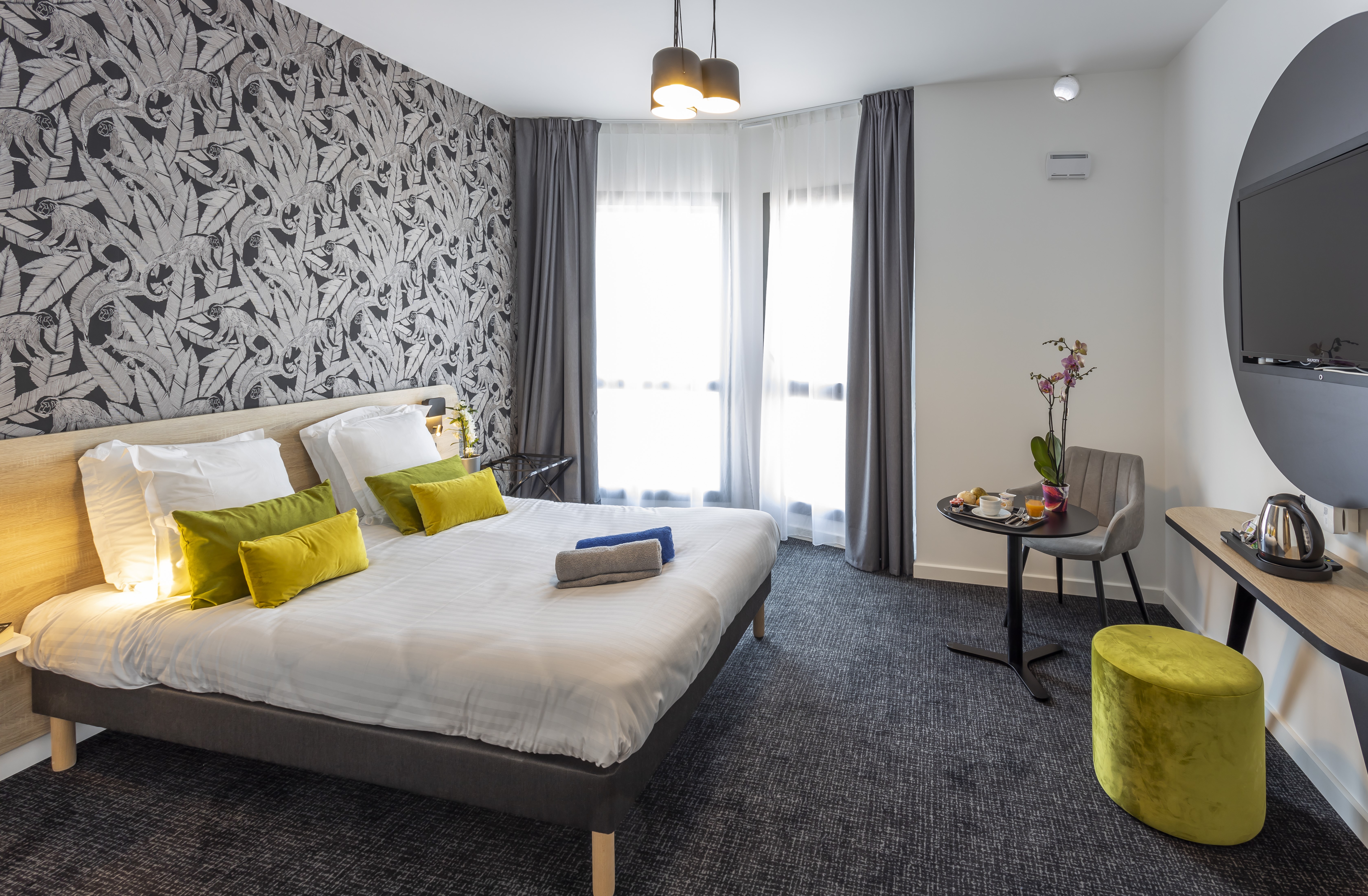 Bright spaces, an unobstructed view of the Baie des Anges, a 10-minute walk from the beach, the hotel is ideally located between the Promenade des Anglais and the Arénas business district.