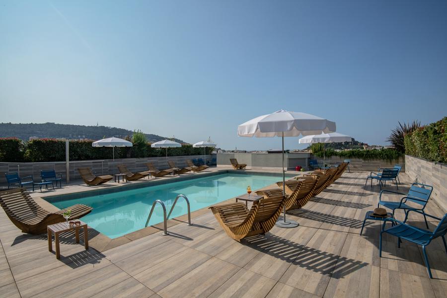 The Novotel Nice Centre vieux Nice hotel lets you visit the Côte d'Azur in complete freedom, and is ideally located just 10 minutes from the old town, Place Garibaldi, the historic entrance to Nice, and the Promenade des Anglais, its beaches and the port are a 20-minute walk away. Roof top with panoramic pool and solarium. A 360° view of the hills of Mont Boron, the old town and the sea, a real postcard souvenir. Restaurant le pois chiche and 150m2 garden terrace open from 11:30am to 10:00pm. Bar open from 6:30 to 00:00. Pay car and bus parking 100 m away.