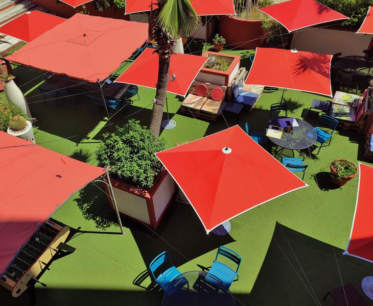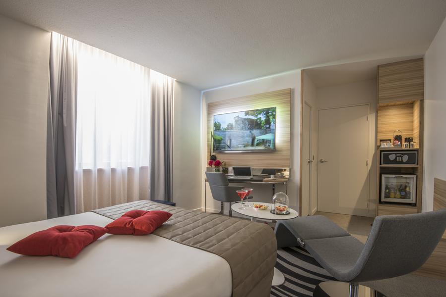 Offre FamilleFamily rooms, free breakfast for children (under 16), welcome gift for the very young. Available free of charge: playground, access to the roofop, highchair, bottle warmer, cot, baby bath, children’s TV channel, colouring games and interactive games table. Access to panoramic swimming pool. Children’s menu at the restaurant ‘Le Pois Chiche’. Accessible to pushchairs. Changing table available.