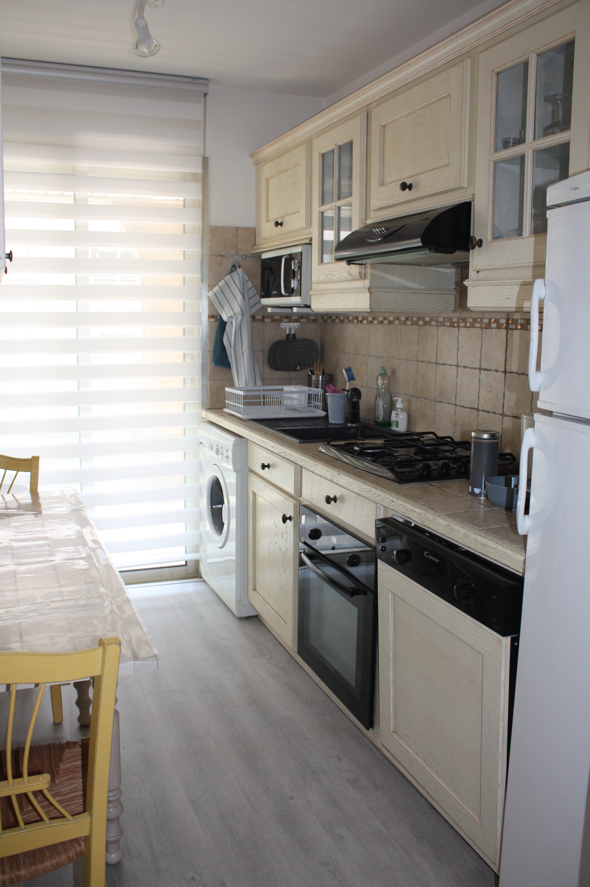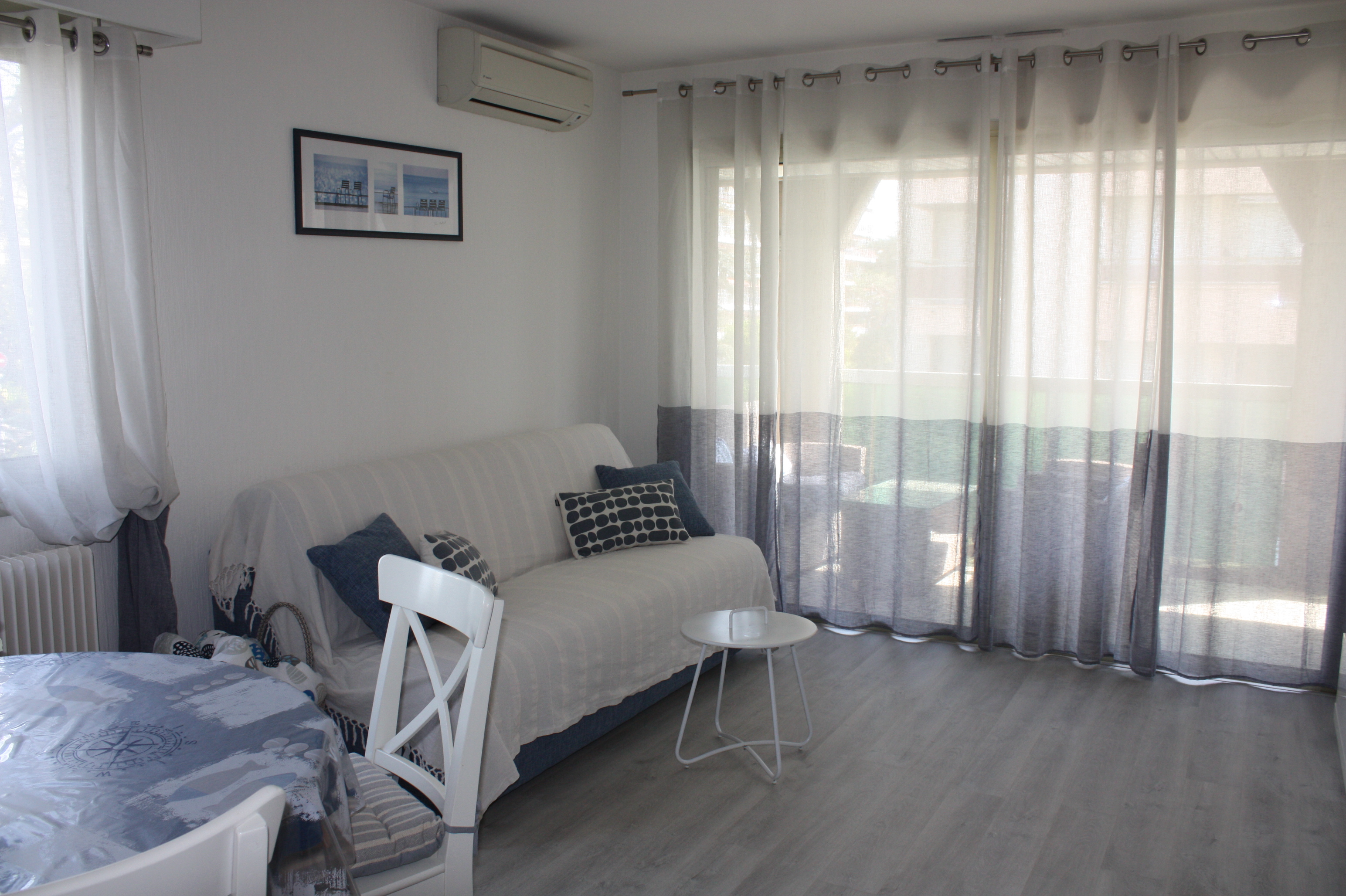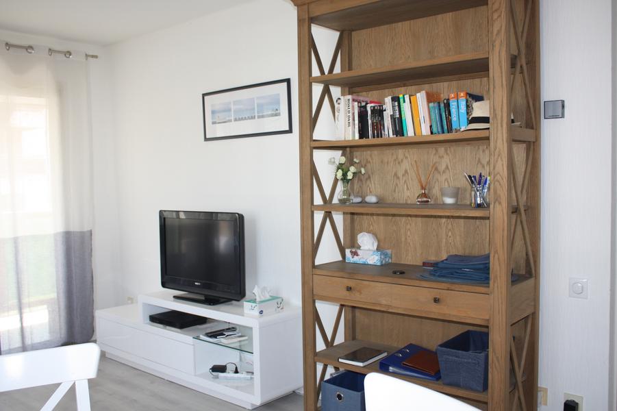 Apartment located on the 1st floor. terrace of 18 m2. Pets not allowed. Close to the sea, the marina and shops. The rental includes: 1 independent bedroom with 1 double bed and 1 single bed and many storage units, 1 lounge/dining room with a bed settee, 1 fully equipped independent kitchen, 1 bathroom with shower, 1 separate toilet , 1 entrance hall with built-in cupboard, 1 closed garage 225 cm wide, 175 cm high, 500 cm long).