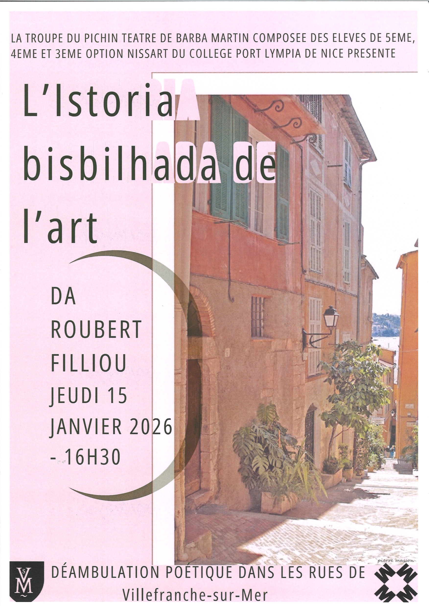 Déambulation poétique dans les rues de Villefranche, par la troupe du Pichin Teatre de Barba Martin, composée des eleves 5ème, 4 ème et 3ème, option nissart, du college Port Lympia de Nice.