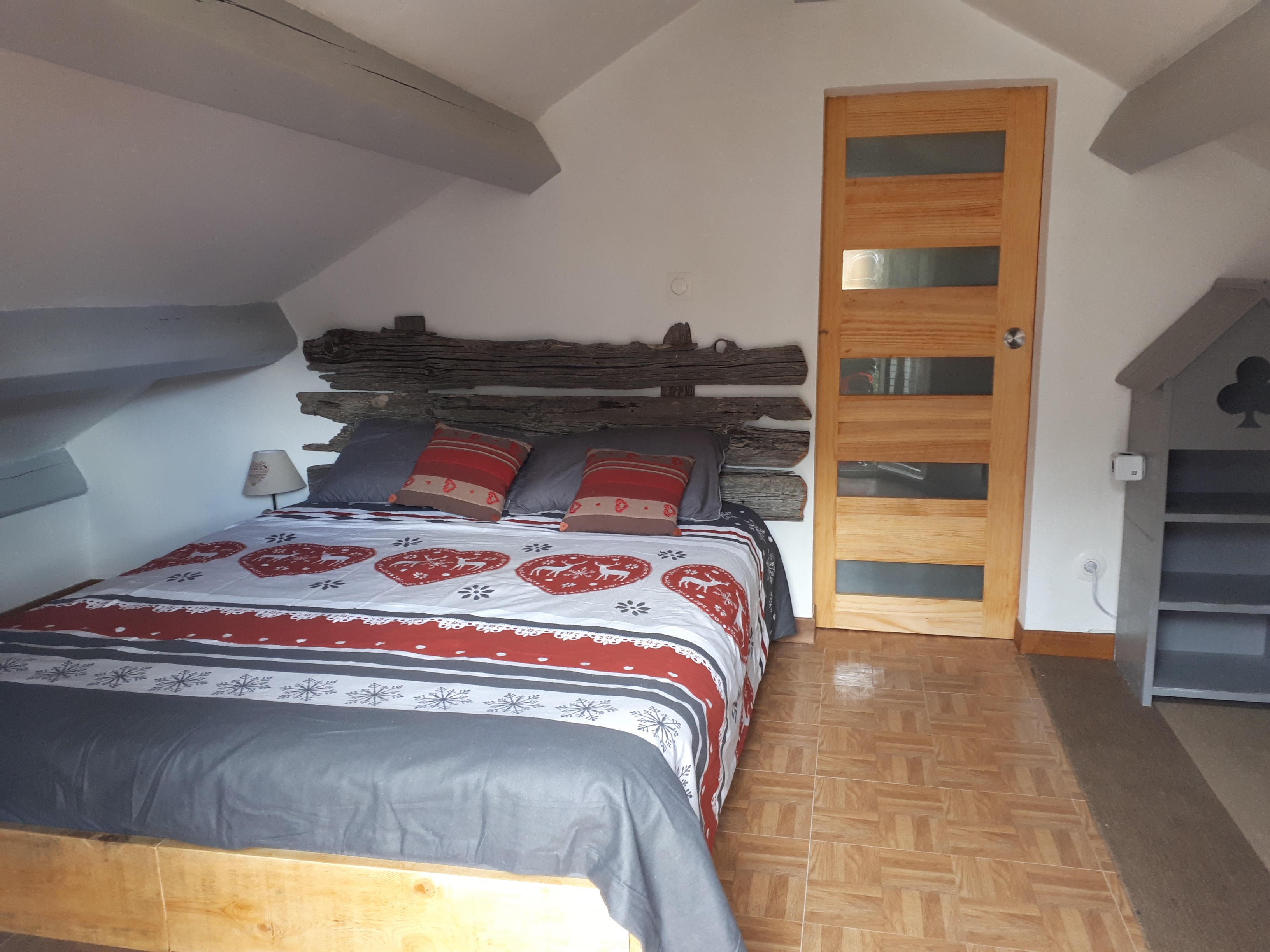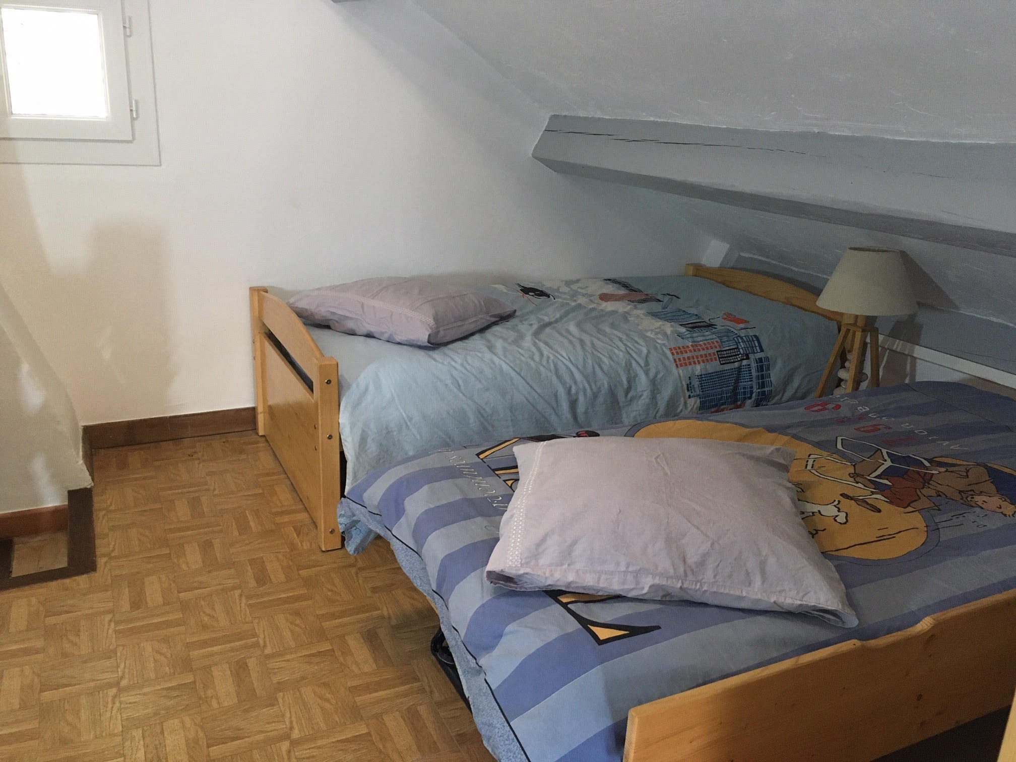 2 attic bedrooms on the first floor. 1 bed 160 x 200 and 2 beds 90 x 190.