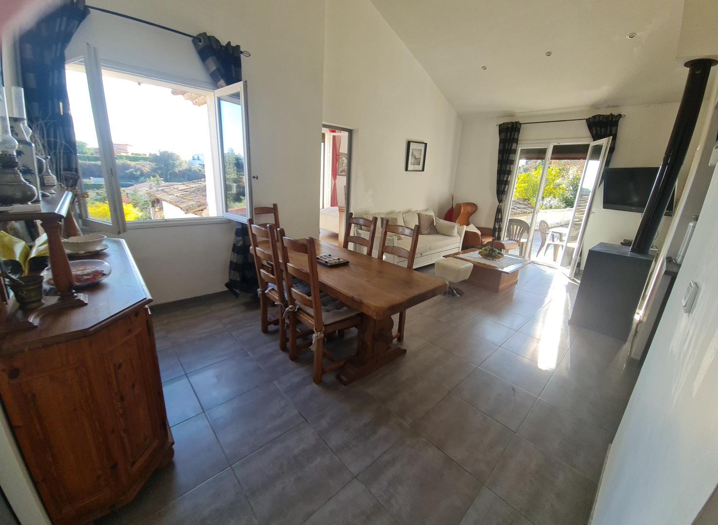 Independent entrance by stairs (20 steps). Private paved sea view terraces (30 m² and 200m²) with blinds. Living room with a sofa bed. Open kitchen (oven, hood, freezer, etc.). 1 Bedroom with 2 single beds (90x190). 1 Bedroom with 2 electric single beds that can form 1 160cm bed, adjoining terrace via 2 steps (barbecue). Bathroom with fairly large 90 angle shower. & WC. Private parking/1 car. Available: books, board games. Winter energy (EDF & electr. heating: 0.25 E/KWH + water). Linen sheets on request. Baby equipment on request.