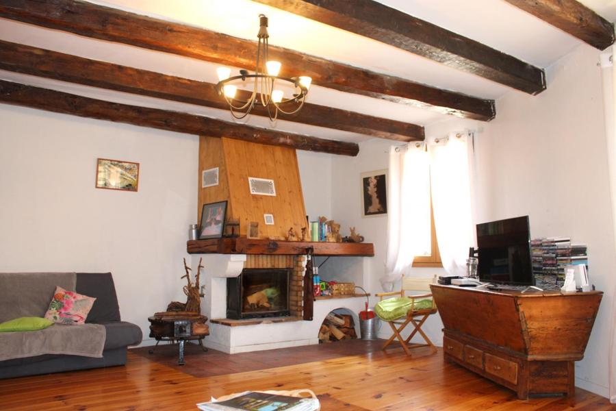 Duplex gîte on the 1st and 2nd level of a house located in the heart of the pedestrian village of St Martin Vésubie : 1st level : Entrance to a large living room including a dining area and a lounge equipped with a sofa bed for 2 pers. (140x190), fireplace with insert and an open kitchen with pizza oven opening onto adjoining equipped terrace. Shower room with toilet. 2nd level :