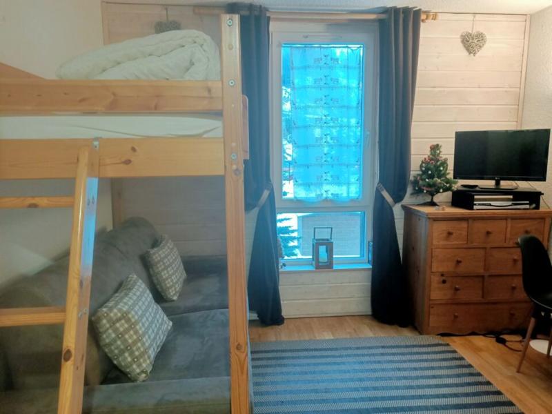 Studio 3 persons maximum ideally located in the center of the resort on the Front de Neige with direct access by the elevator to the shopping mall and the ski slopes. On the first floor of the residence you will find the supermarket and the bakery as well as all the services of the shopping mall (shops, sports equipment rental, bars, restaurants, ski school (ESF), ski pass office, tourist office) bus stop at 500 m. Bedding: Bed express sofa bed in 140cm and bunk bed in 90cm. Linen not included, can be provided on request with supplement.