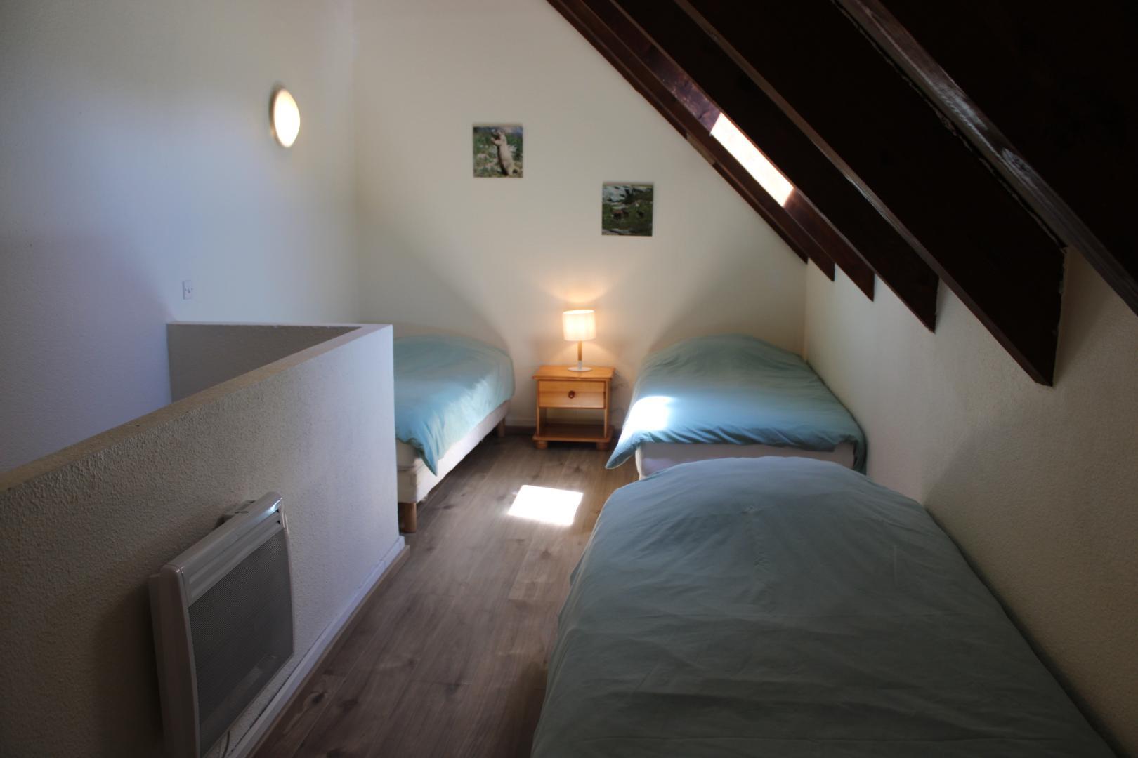 - Upstairs on an open mezzanine with 3 single beds (90x190). Please note: NO television, NOR wifi. 4G available depending on operator.