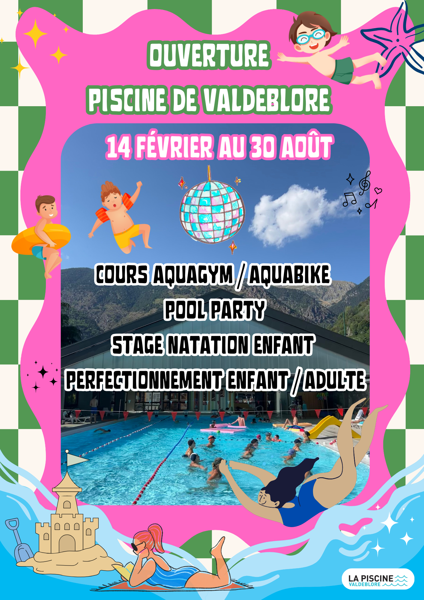 Activités d'été : stage natation enfants initiation & perfectionnement, cours de gym aquatique (voir site colmiane.com).